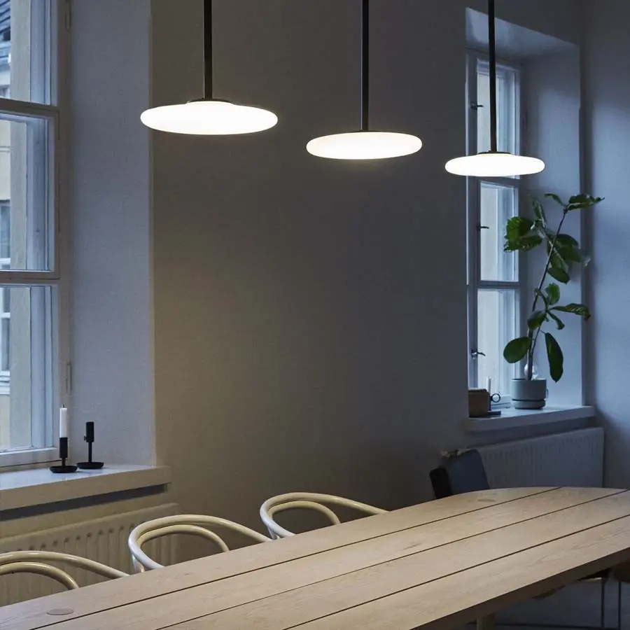 Ihana, que significa exquisito en finlandés, cuenta con una elegante y delicada selección de líneas. Demostrando una síntesis de contrastes, la estructura negra metálica austera integra tres difusores de vidrio soplado opal debajo, equilibrando elementos delicados y firmes dentro de un diseño contemporáneo. Disponible en tres generosas longitudes, la luz de suspensión puede integrarse a la perfección en una serie de ambientes interiores, iluminando ingeniosamente impresionantes techos altos.