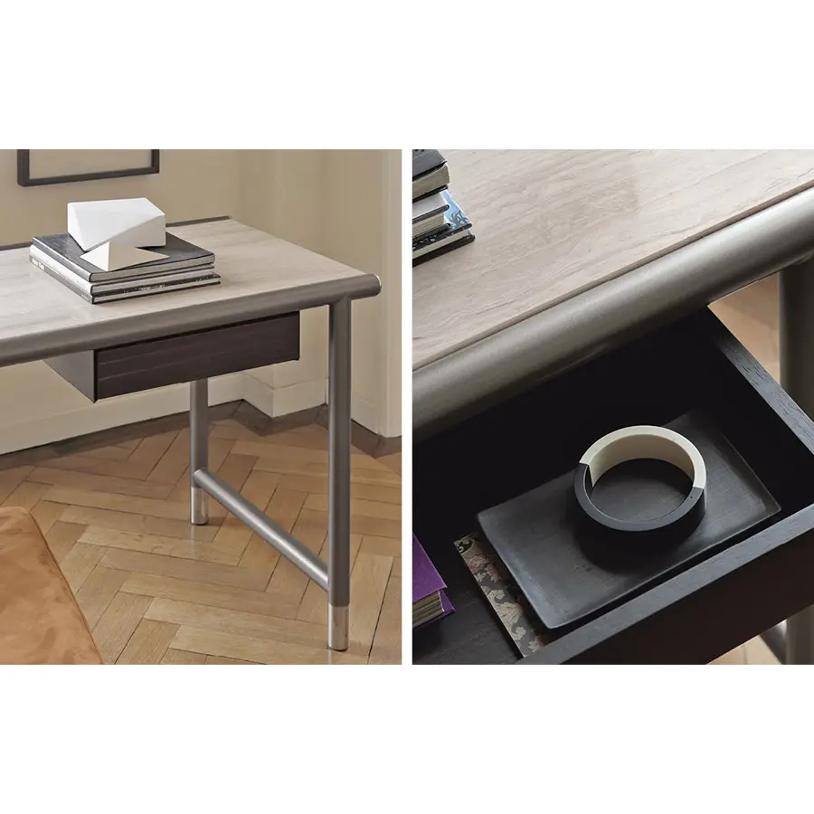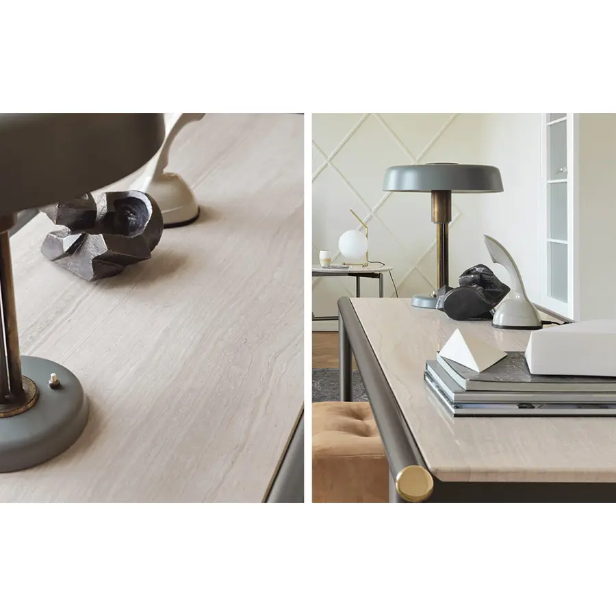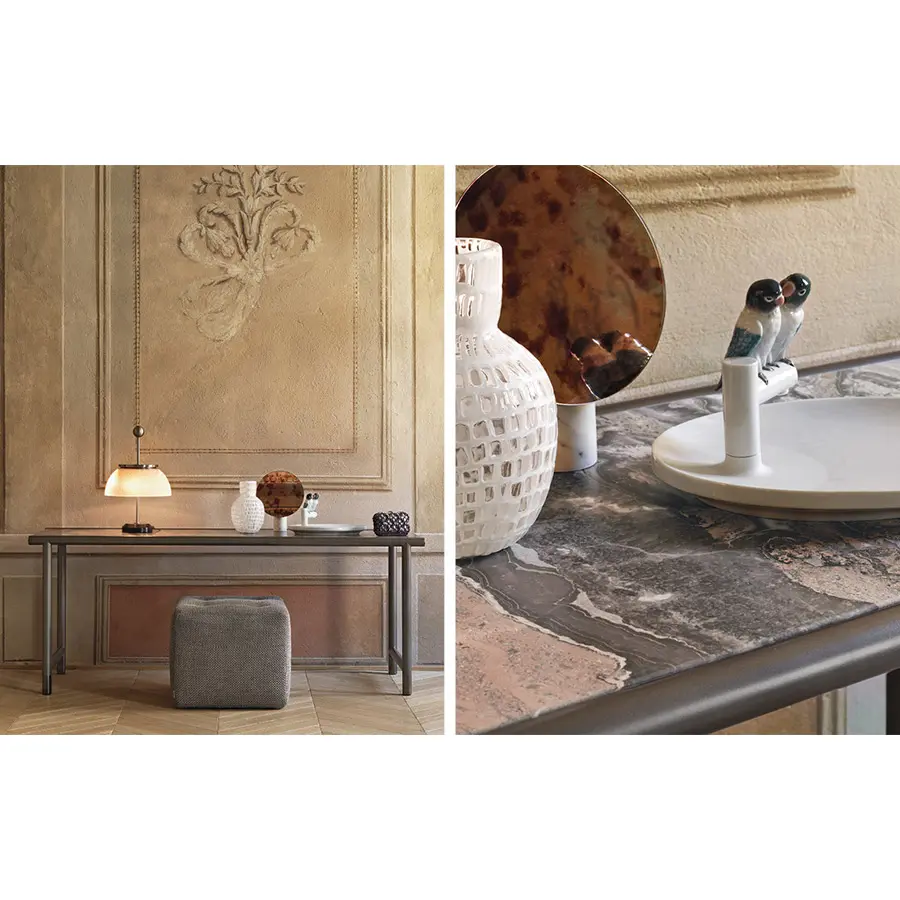 La consola es utilizable también como escritorio o superficie de apoyo; la encimera está disponible en mármol y en ébano.