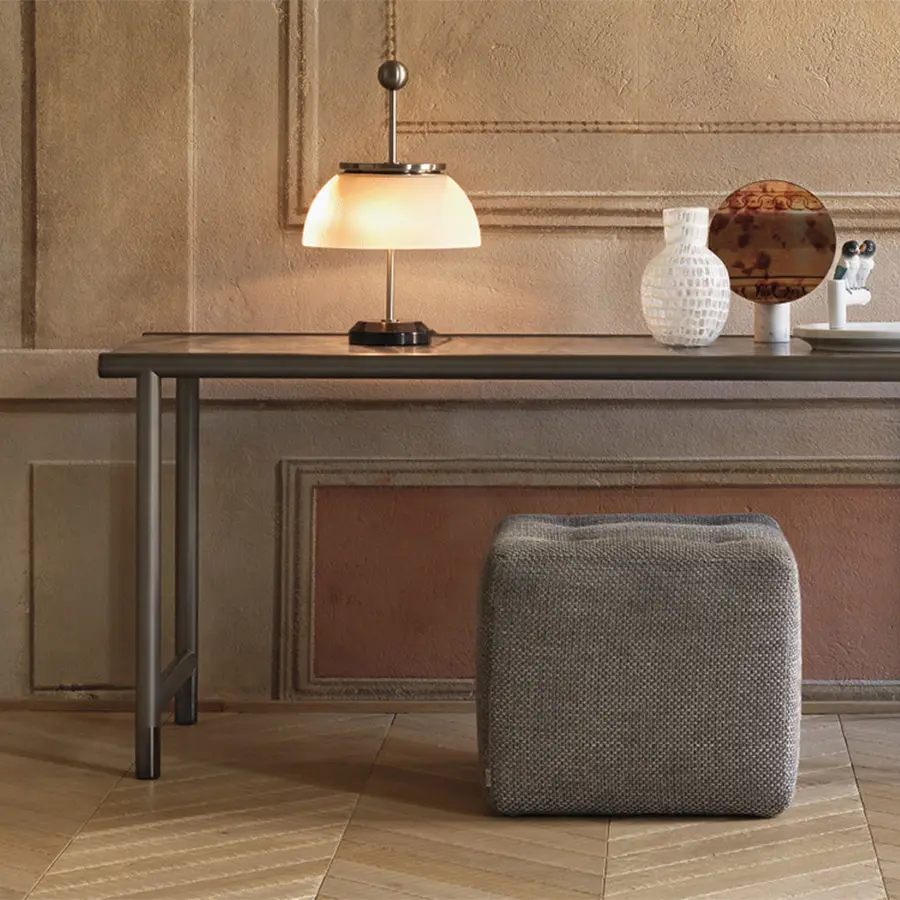 Las medidas reducidas hacen del puf Iko un complemento útil al poder utilizarlo tanto en la habitación como en cualquier otro espacio de la casa. Puf con revestimiento desenfundable disponible en tejido, piel o Ecopelle Dollaro.