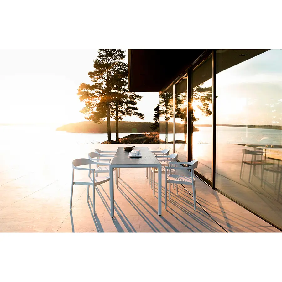 La colección ILLUM es el referente de los diseños clásicos Escandinavos, con materiales resistentes a outdoor. El aluminio se utiliza como madera esculpida en toda la colección, delicadas transiciones de líneas nítidas a suaves.La funcionalidad es de suma importancia para la silla ILLUM, sin comprometer la comodidad y la clase.