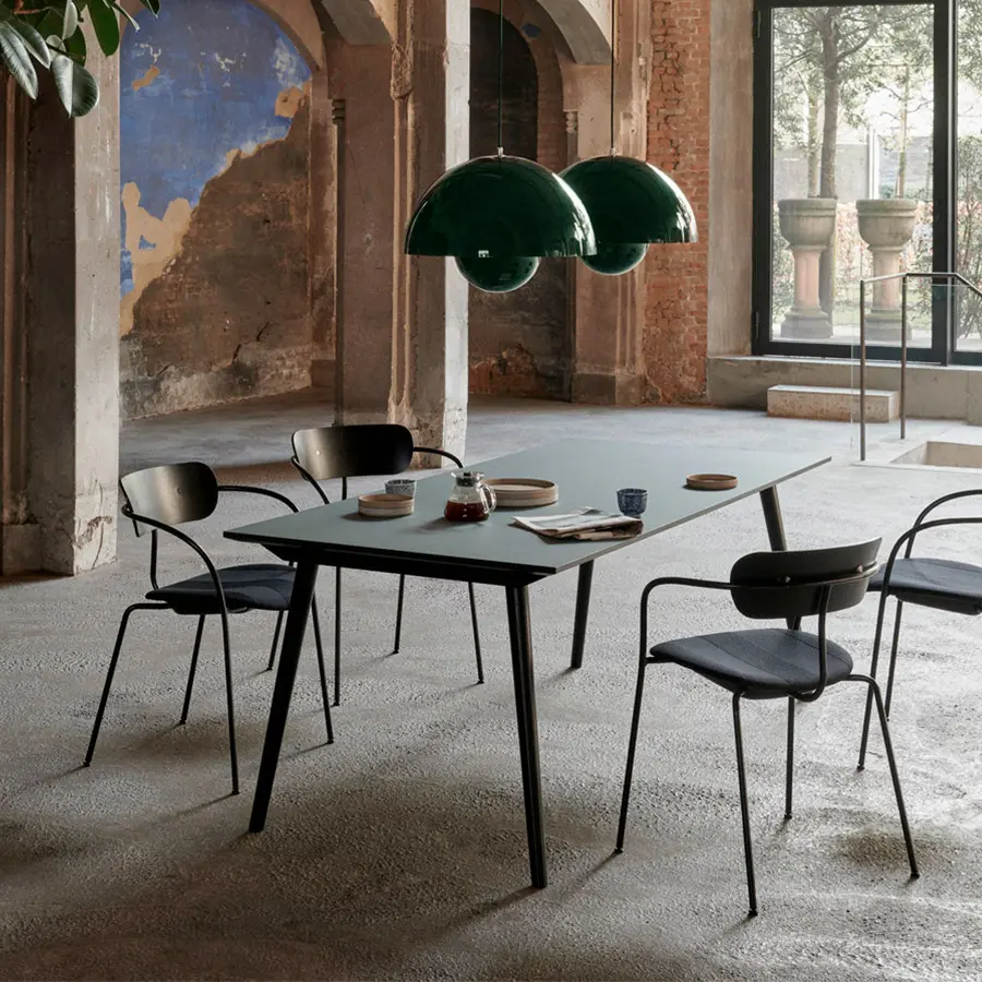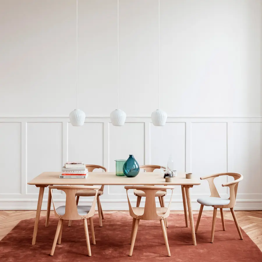 En homenaje a la herencia nórdica de Sami Kallio y su sólida experiencia trabajando la madera, los materiales elegidos y los procesos aplicados son una mezcla de artesanía tradicional con técnicas innovadoras de chapa. El resultado es una mesa de comedor que combina simplicidad con belleza. Ideal para acompañar a la silla In Between, porque las patas tienen el mismo ángulo que las patas delanteras de la silla. Disponible en distintas medidas y acabados.