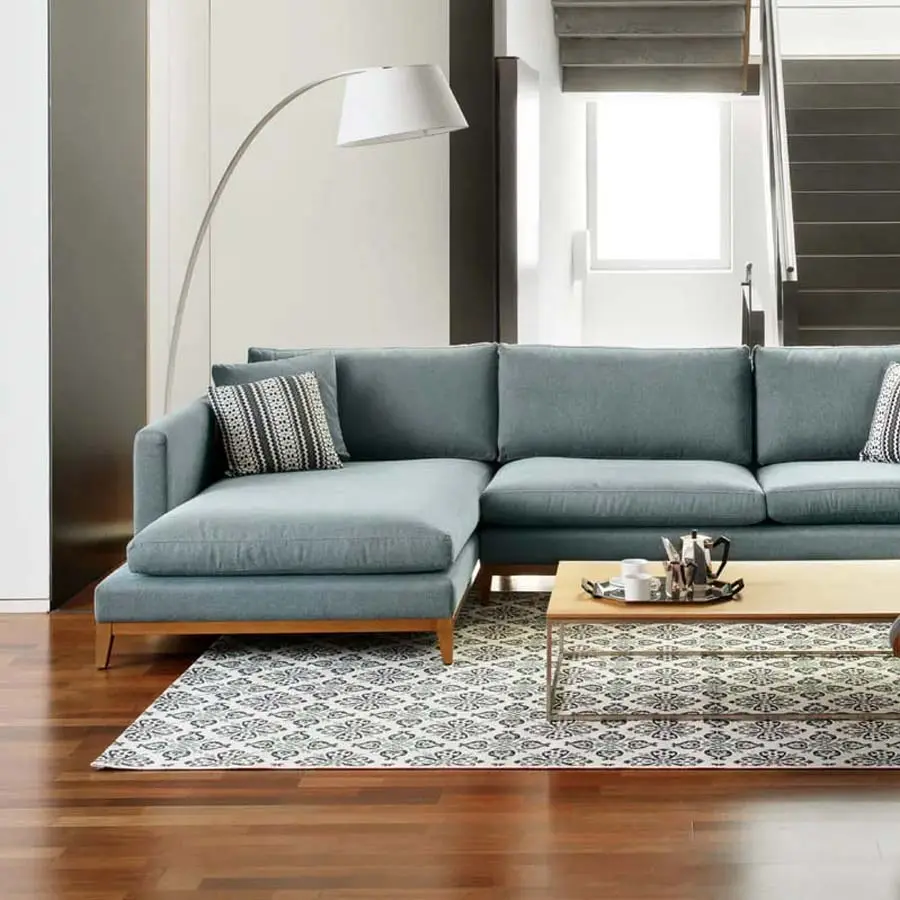 Disponible en distintos formatos: 2-3-4 plazas, chaise longue, rinconero, y tapizado a demanda. Las estructura también se puede teñir con acabado roble natural, nogal o negro.