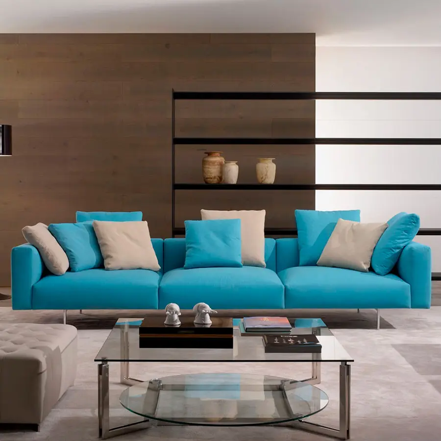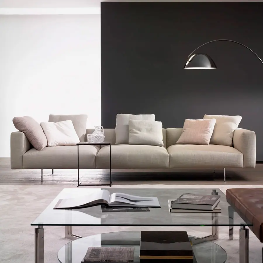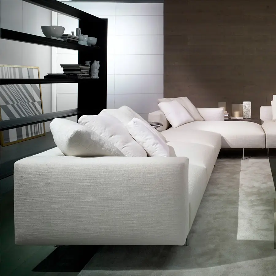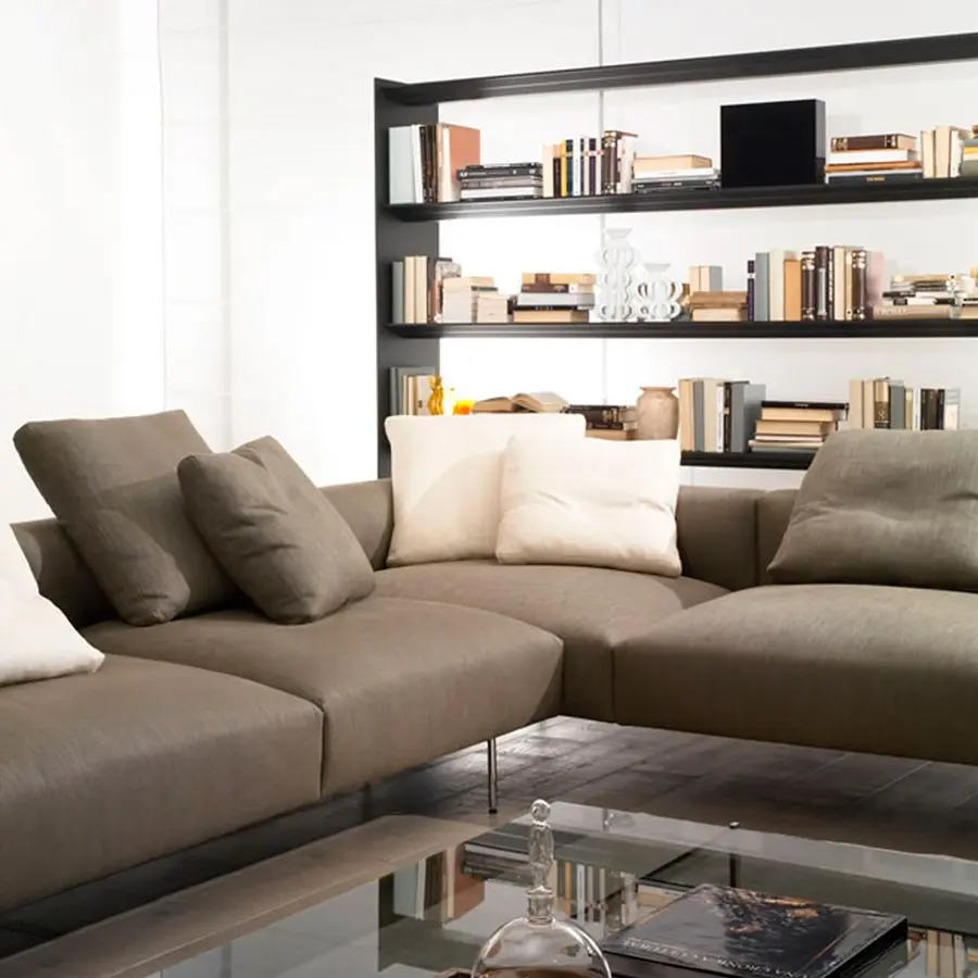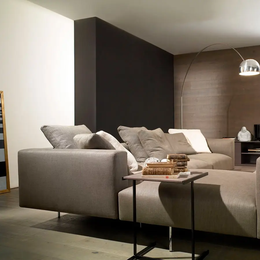 La colección Jackson se concibe como un producto lineal cerca del diseño más minimalista. La masividad de su todo su volumen se presenta sustentada únicamente por unas finas patas de acero en sus extremos. El bastidor metálico que lo constituye permite la creación de sofás de hasta tres metros treinta con el apoyo único de cuatro patas.