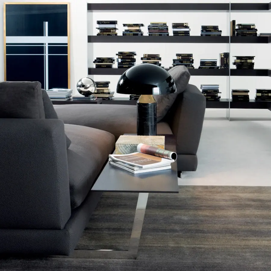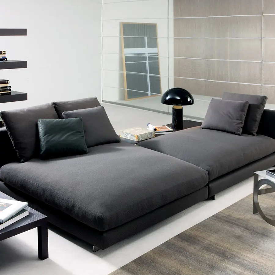 La colección James se concibe como un producto atemporal pero al mismo tiempo ligado a las actuales tendencias del diseño. Su fuerza principal se radica en el confort, de ahí el gran número de cojines que aporta, los cuales permiten jugar con la profundidad de sentada del mismo. Otra característica del sistema James, es la opción de colocar mesas laterales y/o traseras ligadas a la propia base del sofá mediante piezas de acero inoxidable que al mismo tiempo hacen la función de apoyo del sofá contra el suelo.