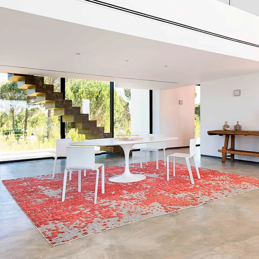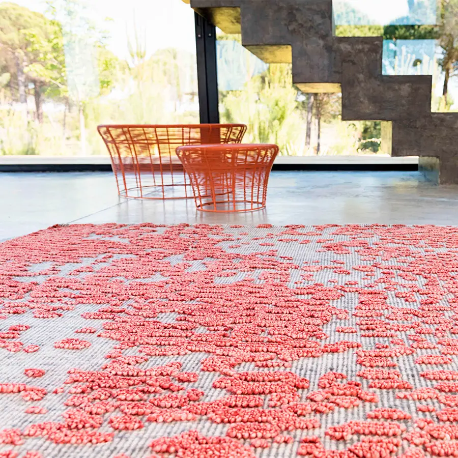 Con un diseño que parece totalmente aleatorio y espontáneo, nuestra alfombra Japan es un modelo que se confecciona manualmente nudo a nudo con 100% lana virgen. Esta técnica permite precisamente poder obtener esa sensación de diseño casual y fortuito que transmite esta pieza, que recuerda a cuando la naturaleza brota de manera silvestre y heterogénea. A sus texturizados brotes se les puede encontrar múltiples analogías: desde una lluvia de pe?talos a campos de cerezos en flor o una colonia de corales marinos.