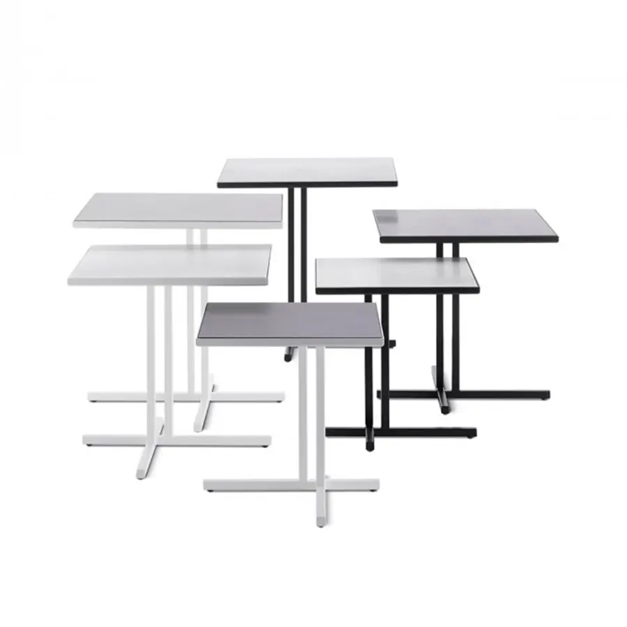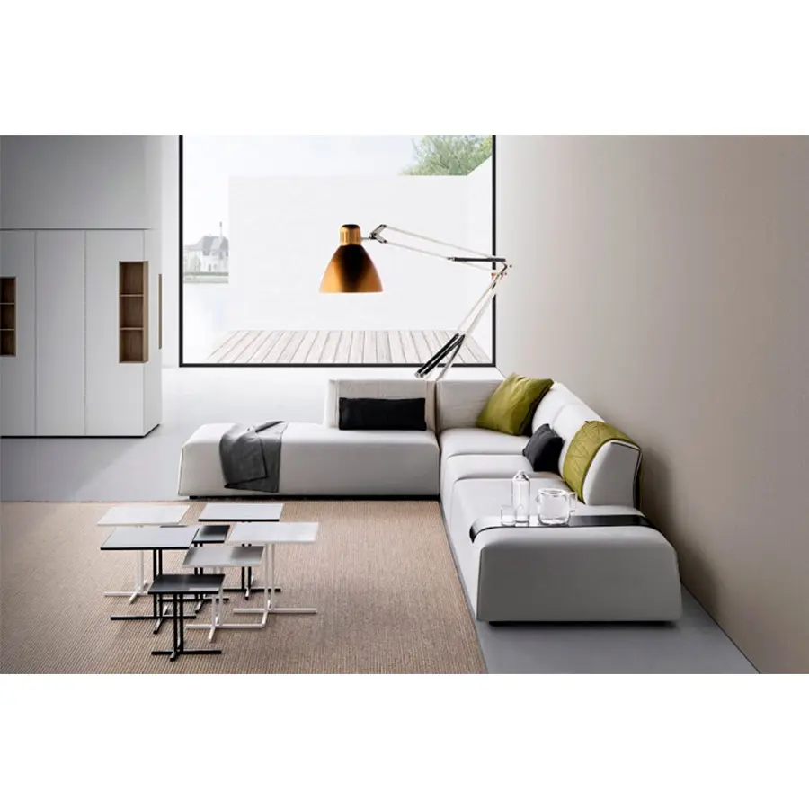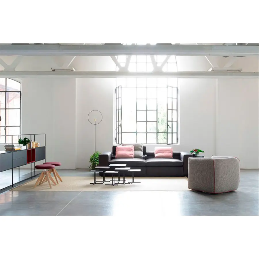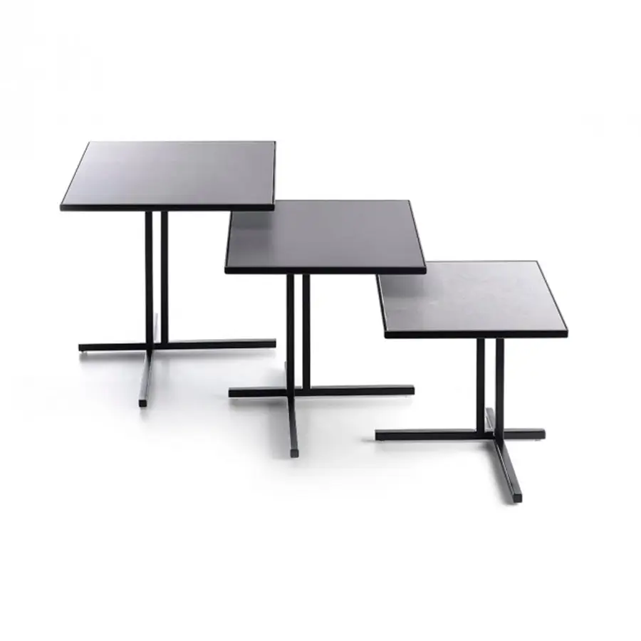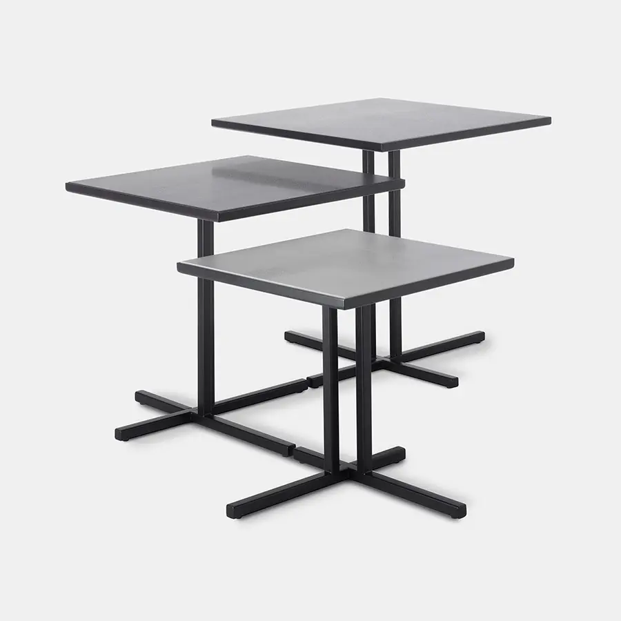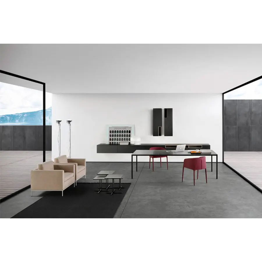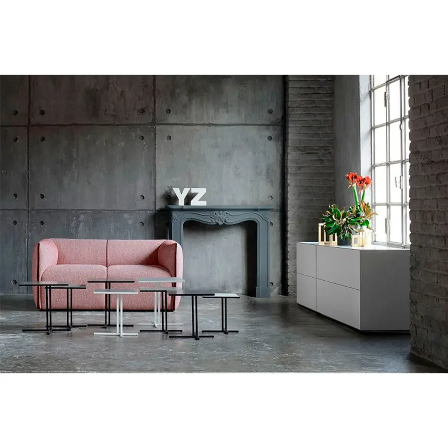Un juego agradable de elementos interconectados, que crea una colección irónica. Con un diseño simple, las mesas de café K se pueden incluir en cualquier contexto y entorno; como una sola pieza o agrupada, se pueden determinar diferentes configuraciones y composiciones basadas en la creatividad de los clientes. Estructura en acero pintado en blanco mate o grafito. Tableros de mesa en grès porcelanizado en las versiones con acabado satinado o satinado: blanco, gris medio y antracita, así como la versión especial Corten.