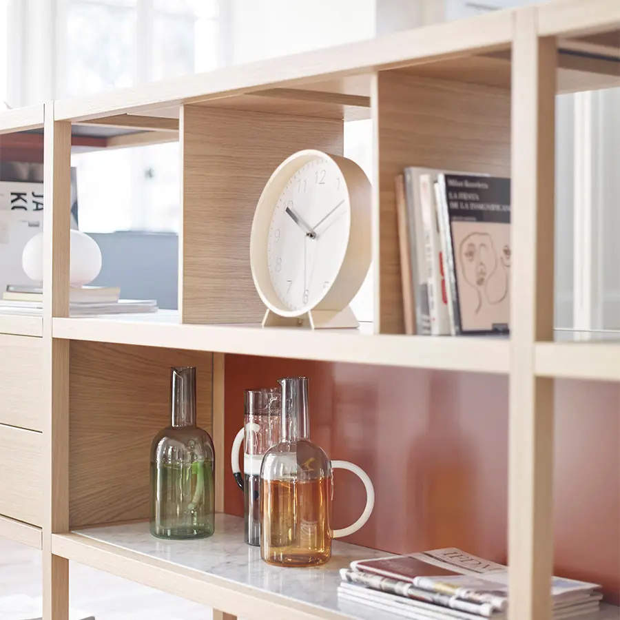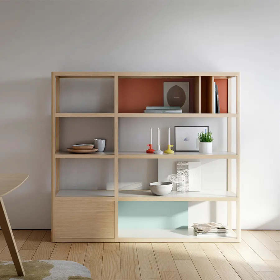 Para el diseño de la colección Kai hemos colaborado con el prestigioso diseñador francés Jean Louis Iratzoki. Juntos hemos creado un sistema que se caracteriza por la combinación de madera maciza con diferentes materiales como lacas de colores, fieltro e incluso mármol. Es decir, se combinan materiales nobles y de calidad con materiales más frescos y actuales. La personalidad de cada pieza dependerá de los elementos utilizados para configurarla: versiones más abiertas o más funcionales, más coloristas o más sobrias…