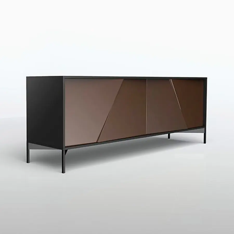 KENDO es un aparador caracterizado por un particular juego geométrico de las puertas: cada una de ellas presenta un corte a 30° que la divide en dos partes no perfectamente coplanares, sino levemente desalineadas, confiriendo a la superficie un elegante efecto de claroscuro. KENDO está disponible en los acabados ennoblecidos, Fashion wood y lacados. Bajo pedido, las puertas, la estructura y la encimera pueden tener acabados o colores diferentes.