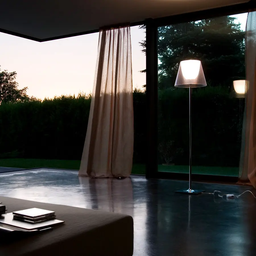 La lámpara de pie KTribe F2, diseñada por Philippe Starck, es una lámpara simple y elegante que es adecuada para todos los entornos.