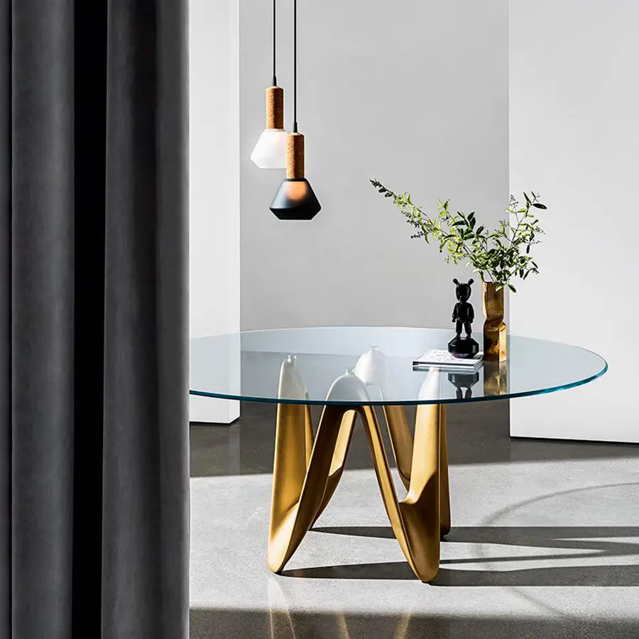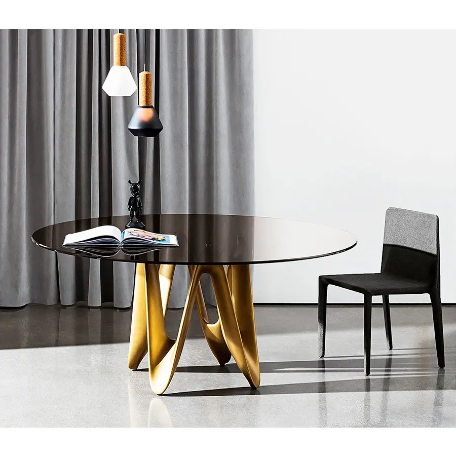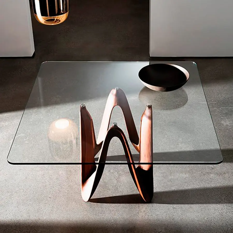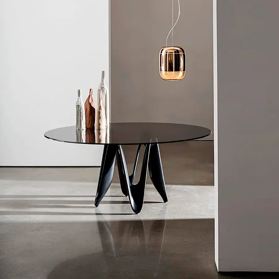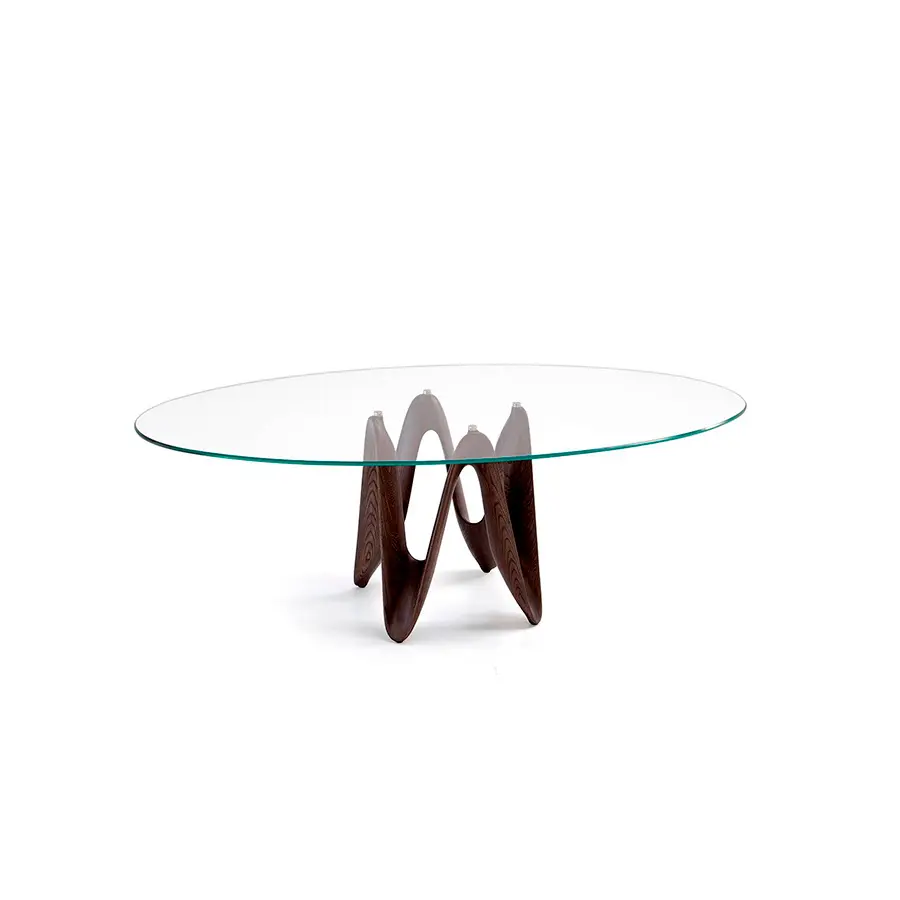 El diseño de la mesa Lambda se ha inspirado en el dinamismo de un elemento en movimiento, como la cinta de una gimnasta que salta en el aire dibujando formas naturales y suaves. Esta espectacular mesa aporta un toque de armonía esencial a cualquier espacio. Disponible en distintas medidas y acabados.