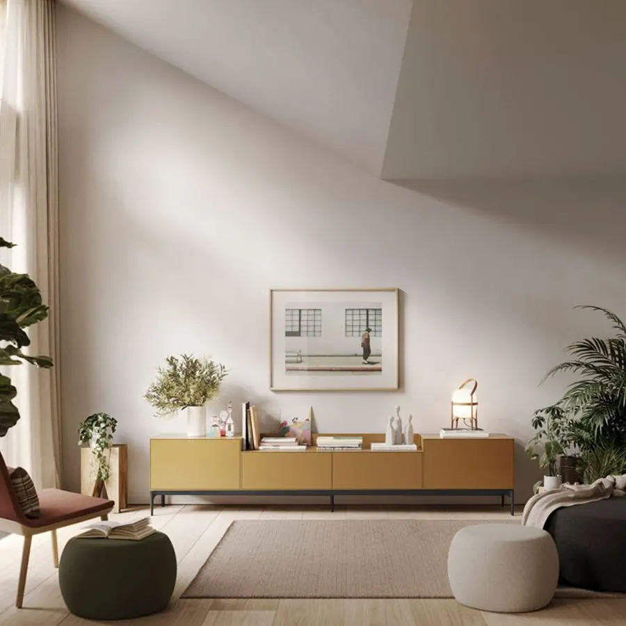 Aparador Lauki de Treku Iconic. Esta pieza en concreto se fabrica en tan solo tres semanas y permite cambiar los módulos lacados en cualquier color de la paleta de Treku.