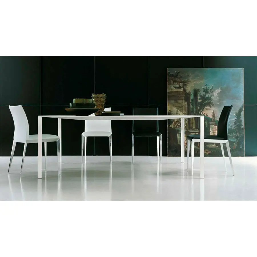 LessLess es una gama completa de mesas, rectangulares y cuadradas, pintadas en diferentes colores. Una mesa de aluminio cuya fuerza radica en un juego de esquinas y pliegues. El contorno externo de la mesa horizontal es muy delgado y rígido y se obtiene doblando la lámina de aluminio a lo largo de planos inclinados. Diseñadas originalmente para la Fondation Cartier en París, las mesas LessLess destacan por su elegancia intrínseca y líneas de luz en cada entorno.