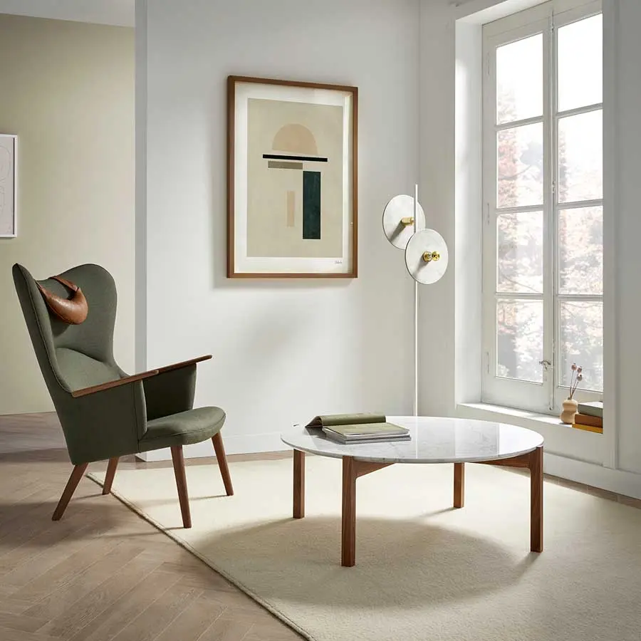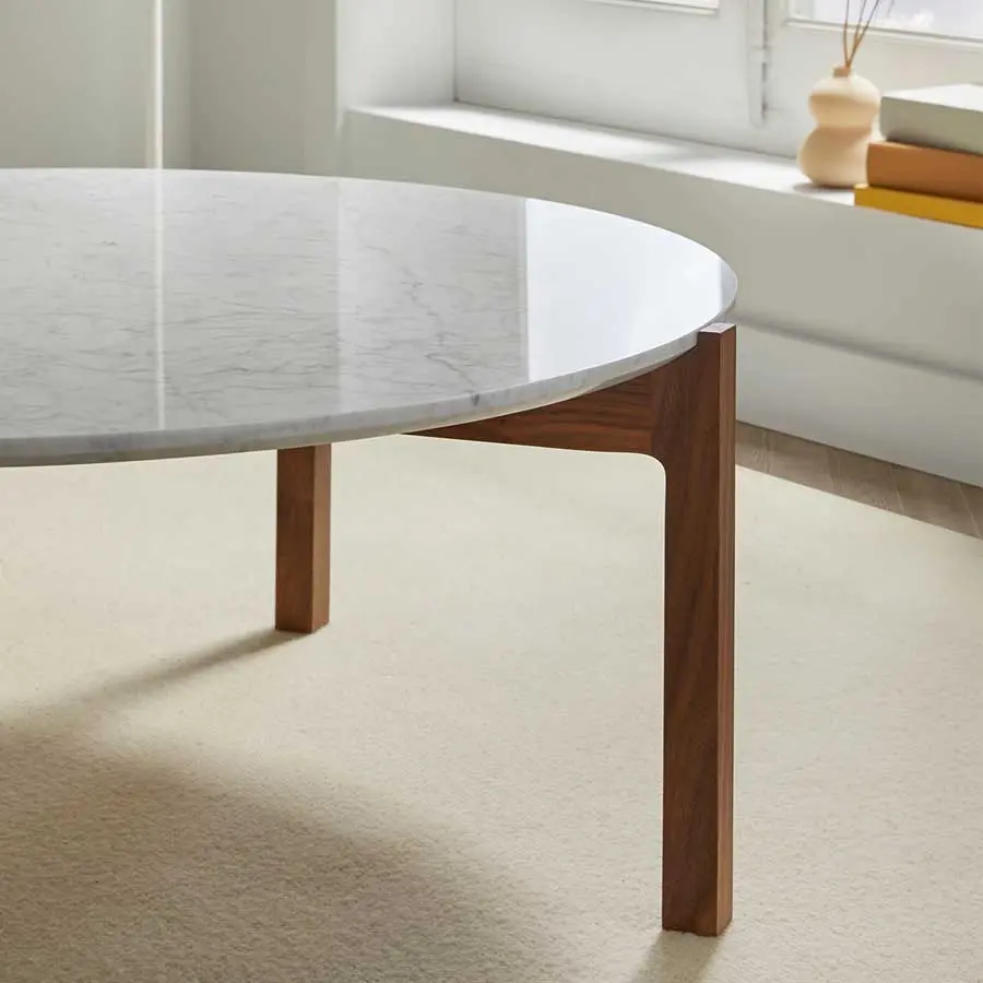 La unión de las patas con el sobre, el detalle de su bisel y los encuentros del sobre son detalles que la hacen única. Gracias a la combinación de sus acabados, mármol, nogal y haya, encontramos un clásico dentro del diseño contemporáneo. La mesa la encontramos en diversas medidas, esto hace de Lotta una colección adecuada para cualquier estancia por su gran versatilidad.