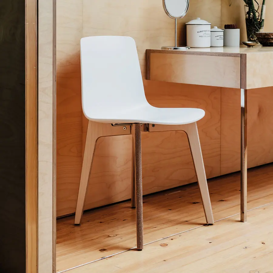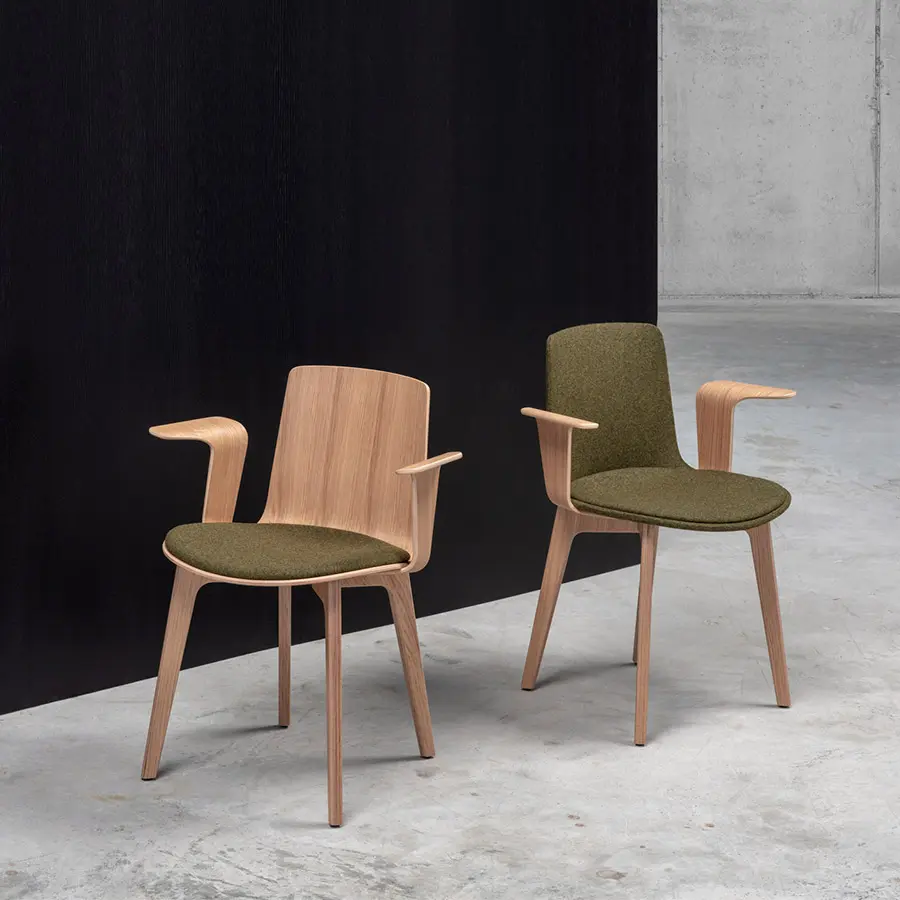La colección Lottus Wood es una evolución del programa Lottus que incluye un nuevo diseño con patas de madera de abedul o roble. La madera, combinada con los diferentes acabados del asiento, ofrece calidez y elegancia, y es muy adecuada para instalaciones con un estilo nórdico y sostenibles.