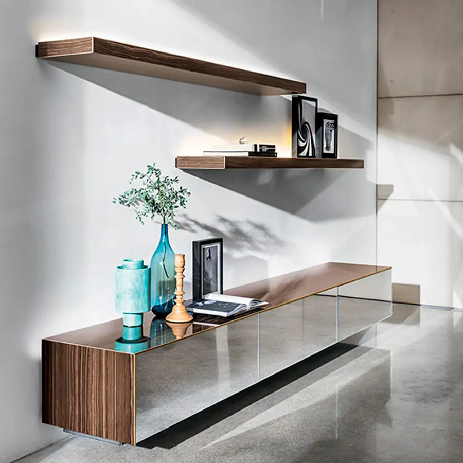 Sistema de estantes personalizables con estructura interior de acero.