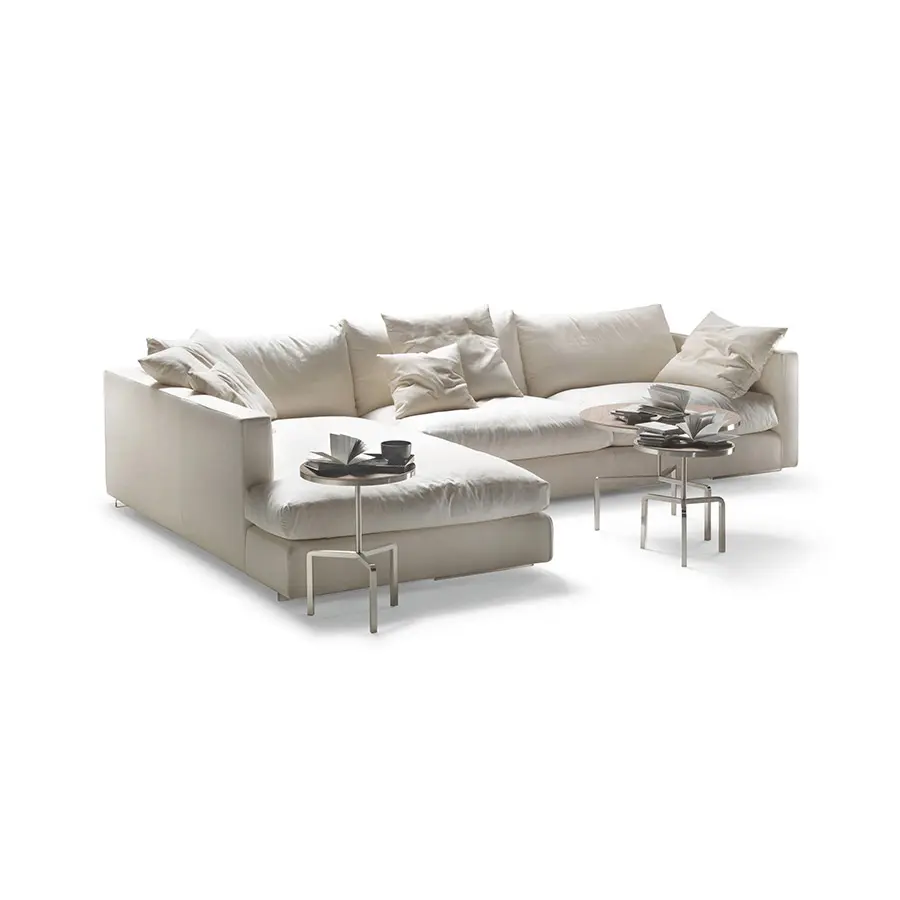 Magnum representa el arquetipo del sofá según Flexform. Elemental en la forma, pero resuelto de forma óptima en sus proporciones y en la atención por los detalles de confección. El sofá Magnum puede ser lineal y modular, y tiene una sólida estructura de madera con relleno de poliuretano recubierto con un forro de tela protectora. Magnum es un sofá diseñado para ofrecer una gran comodidad: los cojines del asiento y el respaldo se caracterizan por su generoso acolchado de pluma de ganso. El sofá Magnum muestra un aspecto ligero gracias a sus pies de metacrilato transparente. La estética acogedora y familiar del sofá Magnum reserva a la expresividad de la tela o la piel elegidas para la tapicería la tarea del relieve estético. Su versatilidad le permite vestir con igual desenvoltura tanto una tela lisa como tejidos con patrones estampados.