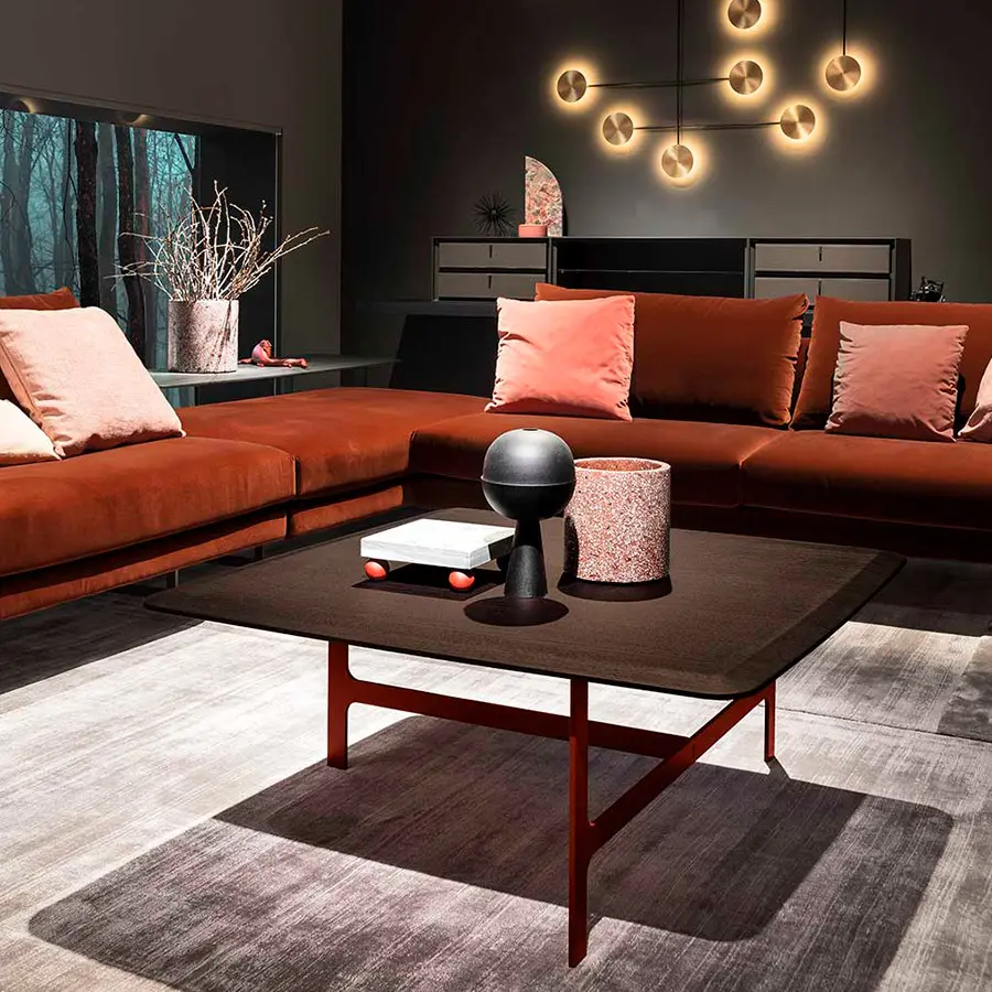 Inspirado en la geometría cartesiana y la posibilidad de crear superposiciones e intersecciones que sirven para un propósito doméstico. Las formas geométricas se suavizan significativamente mediante la superposición de las tapas redondeadas y las vigas de conexión del marco de metal.
