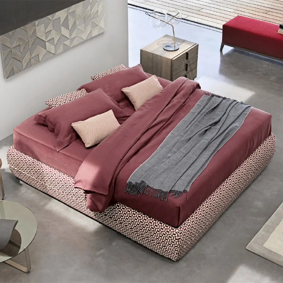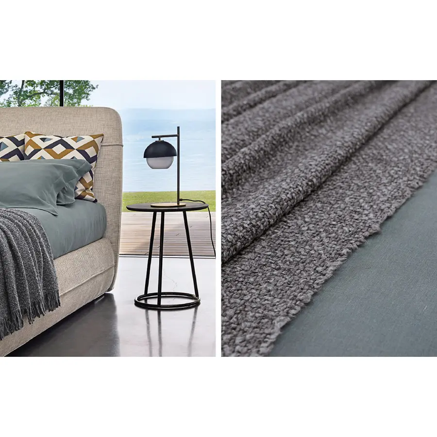 Cama refinada, de inspiración oriental, ideal para ambientes tanto clásicos como modernos. La base se distingue por un vivo horizontal, a lo largo de todo su perímetro, y que rompe la percepción de su altura remarcable: 38 cm del piso, dos más respecto a los somieres y las camas tradicionales. El mismo dibujo decorativo lo encontramos en la cabecera, a 2/3 de la altura. Mandarine se ofrece también en la versión somier, sin cabecera, que se puede enriquecer en pared con drapeados, cuadros, cortinas y boiserie. En ambas versiones está disponible con base de muelles Leonardo, base contenedor o base fija con somier de lamas regulables y pies de níquel negro brillo.