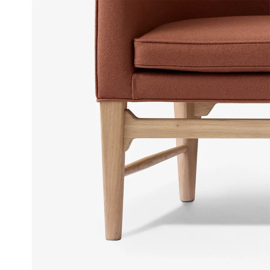 Este diseño modernista tiene un marco en roble macizo, la tapicería es apretada pero tiene cojines sueltos, creando una pieza más relajada. Jacobsen y Lassen querían adoptar un enfoque más humano del modernismo y se centraron en gran medida en la comodidad y la habitabilidad. El sofá Mayor ganó el premio a ‘Mejor reedición’ en los prestigiosos premios Wallpaper * Design Awards en 2013.