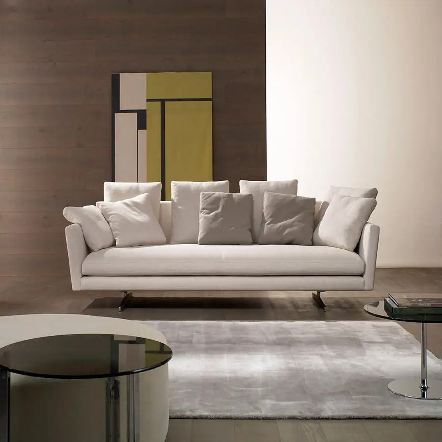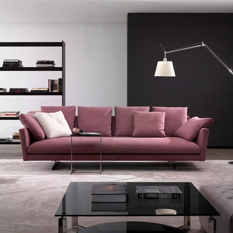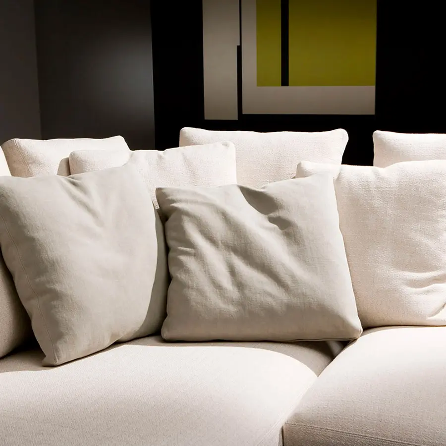 La colección Menfis se presenta como un producto atemporal pero al mismo tiempo ligado a las más actuales tendencias del diseño. Su fuerza principal se radica en el confort, de ahí el gran número de cojines que aporta, los cuales, permiten jugar con la profundidad de sentada del mismo. El programa permite numerosas combinaciones a fin de poder ser adaptado a múltiples espacios. Partiendo de cuatro medidas básicas se pueden conseguir magníficas composiciones de sofás o rinconeros.