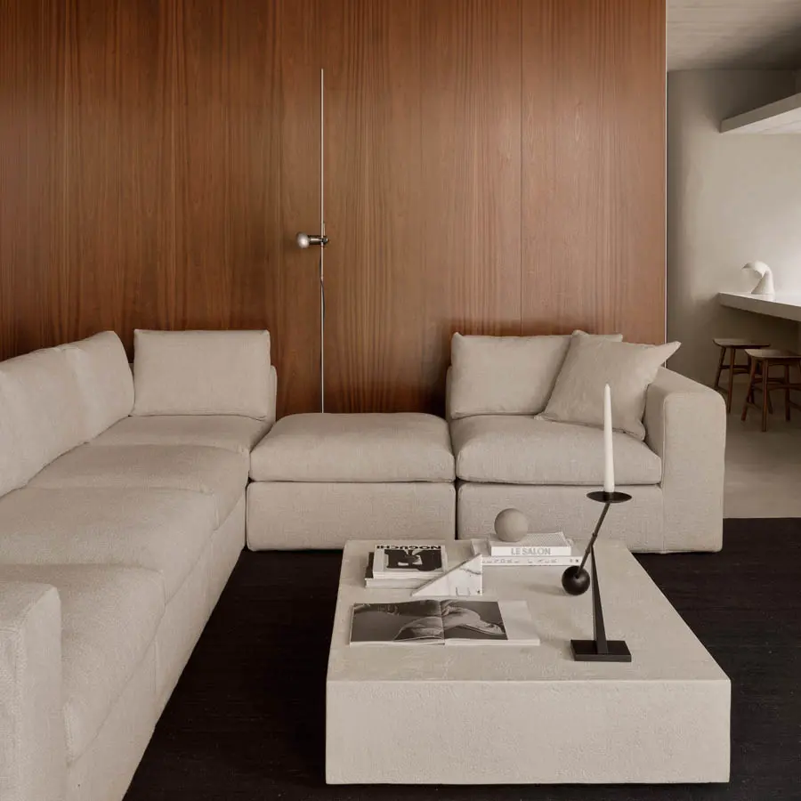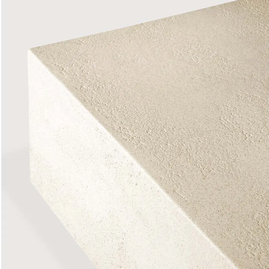 Mesa de centro fabricada con microcemento, una mezcla de áridos finos y minerales combinados para formar un acabado único.