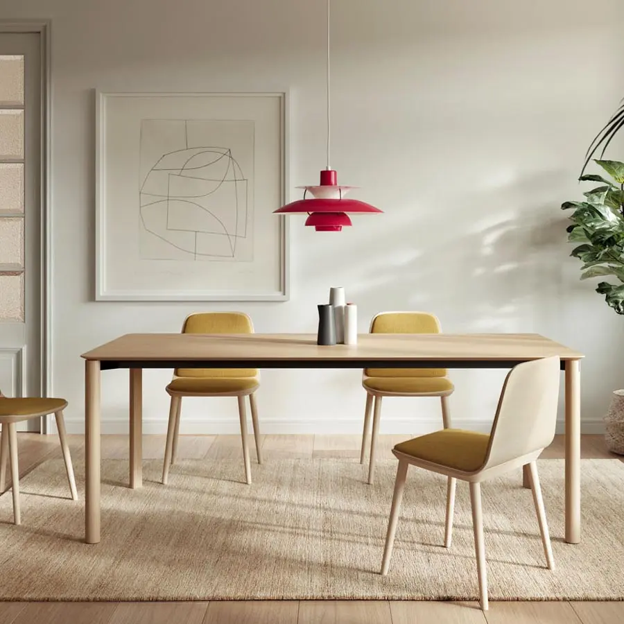 La mesa Laga es fruto de una nueva colaboración con la diseñadora de Donosti, Silvia Ceñal. El detalle metálico incrustado en los pies de la mesa, que puede ir lacado en cualquiera de nuestros colores, le confiere una personalidad muy singular. El hecho de que la encimera no descanse totalmente sobre los pies, permite apreciar mejor ese detalle, y genera una mayor ligereza visual. La mesa Laga puede ser fija o extensible.