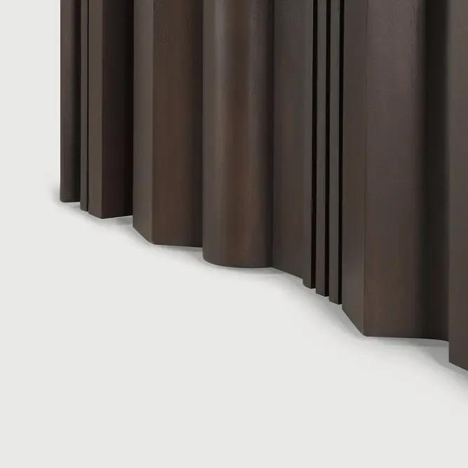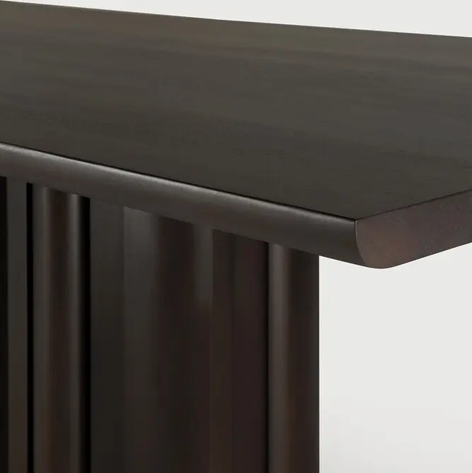 Inspirada en el rítmico flujo de la repetición y la variabilidad, la mesa de comedor Sequence aporta una sensación de movimiento a su espacio. Sus elementos de madera maciza establecen una base escultórica donde las formas alternadas consiguen un juego equilibrado de presencia y apertura. La superficie lisa de la mesa brinda un contraste discreto y consolida la simplicidad del diseño. Materiales: Caoba teñida de marrón oscuro