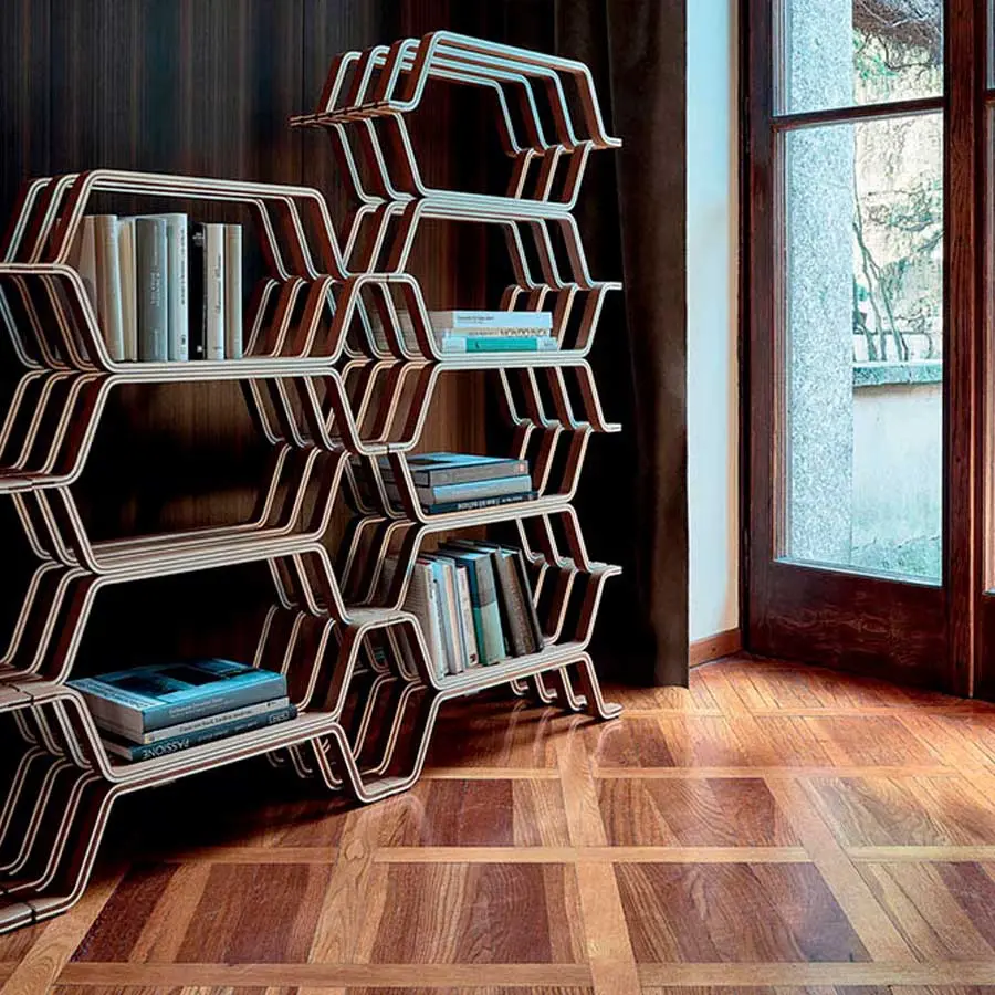 MHC.2 es una reedición del prototipo de la librería diseñada en 1959 por Yasuhiko Itoh. Realizada en madera curvada – una elaboración complicada para la época – recibió un premio en la tercera edición de la “Selettiva” de Cantù de 1959. El resultado es una pieza elegante y refinada. Tras la primera reedición limitada de 100 piezas numeradas, ahora está disponible en serie no numerada en madera curvada forrada en nogal.