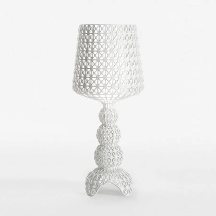 Versión mini de la lámpara en polímero termoplástico complejo, con la característica superficie perforada por donde se difunde la luz.