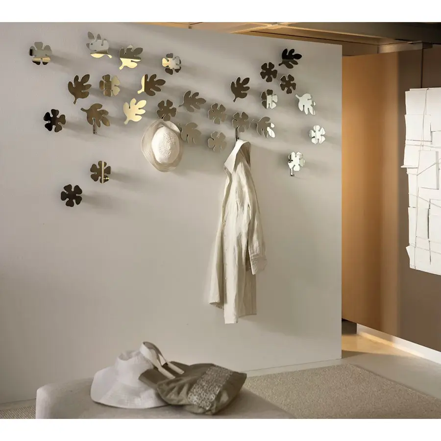 Conjuntos de tres espejos de pared orientables con gancho colgador.