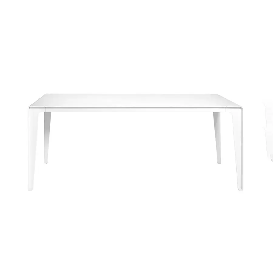 Minimalismo con un toque juguetón. La colección Mirthe reúne todos los elementos de un típico mueble de exterior de Tribù: líneas puras y limpias que no pasan de moda, con una imagen fresca y moderna. Las patas se han soldado longitudinalmente, sin juntas, en un ángulo de 90° y se han integrado en el tablero.