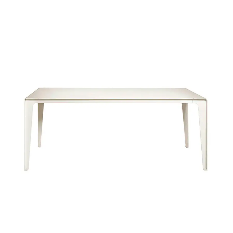 Minimalismo con un toque juguetón. La colección Mirthe reúne todos los elementos de un típico mueble de exterior de Tribù: líneas puras y limpias que no pasan de moda, con una imagen fresca y moderna. Las patas se han soldado longitudinalmente, sin juntas, en un ángulo de 90° y se han integrado en el tablero.