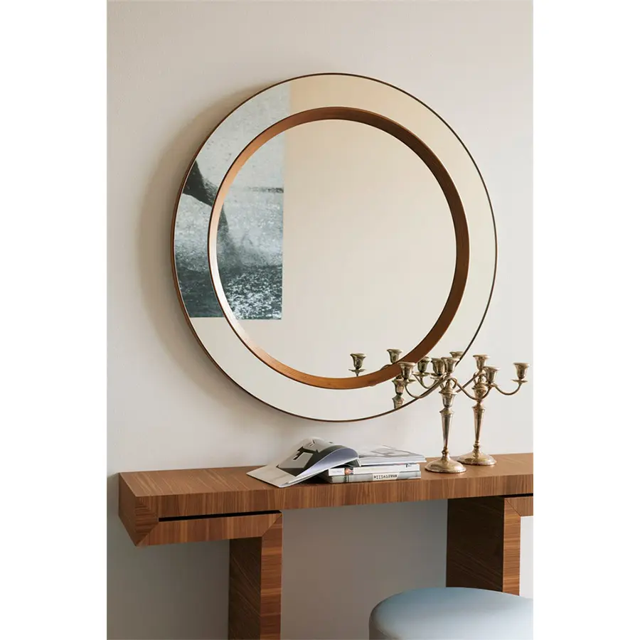 Espejo redondo de pared en nogal canaletta. Diametro 110cm