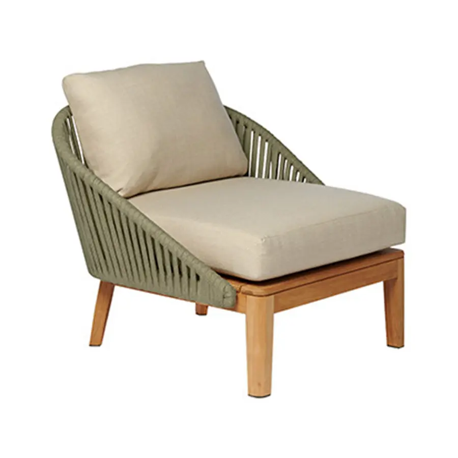 El vaporoso diseño de la colección Mood y la cálida combinación de teca y mimbre trenzado a mano, crea instantáneamente un ambiente especial en su terraza. El trenzado de color Moss, Linen, Wengé, Earthbrown o Stonegrey en Tricord está compuesto por poliolefina, una fibra ecológica y resistente a la intemperie que ofrece un aspecto y una sensación muy naturales. Ofrece un confort muy agradable gracias a los cómodos cojines de exterior.