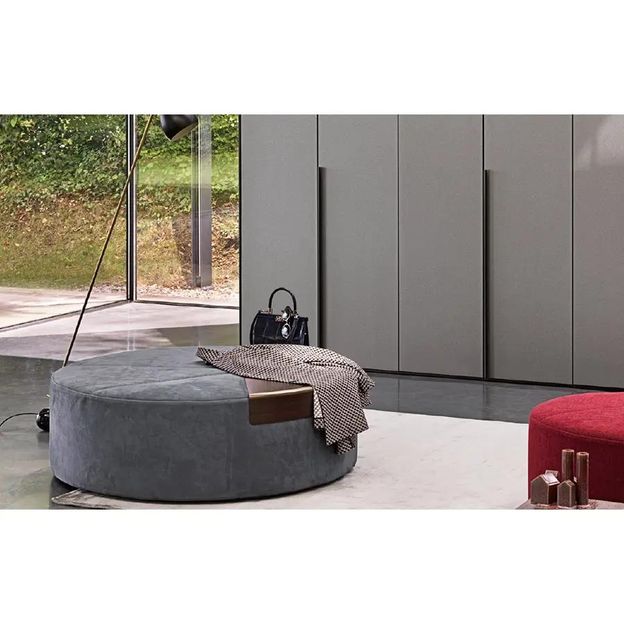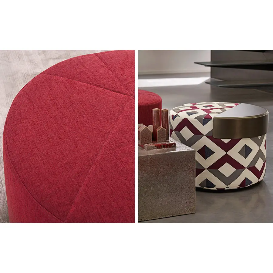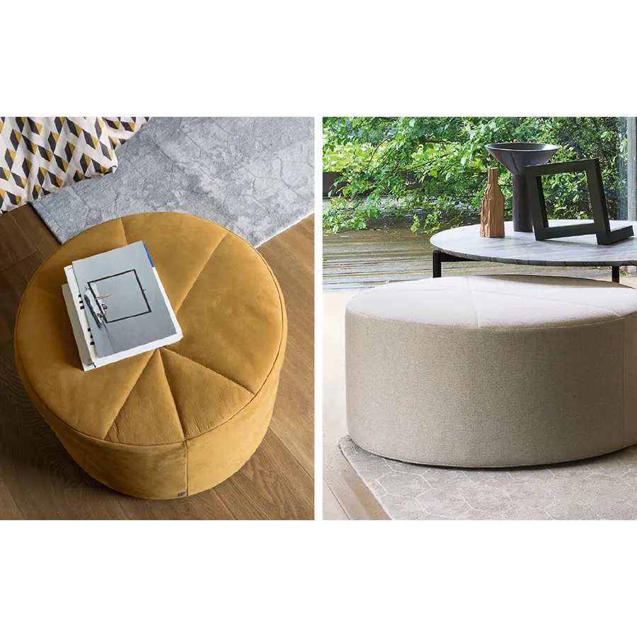 Se ofrecen en tres medidas (diámetro 51, 81 y 121 cm) y se pueden revestir tanto en tejido como en piel.
