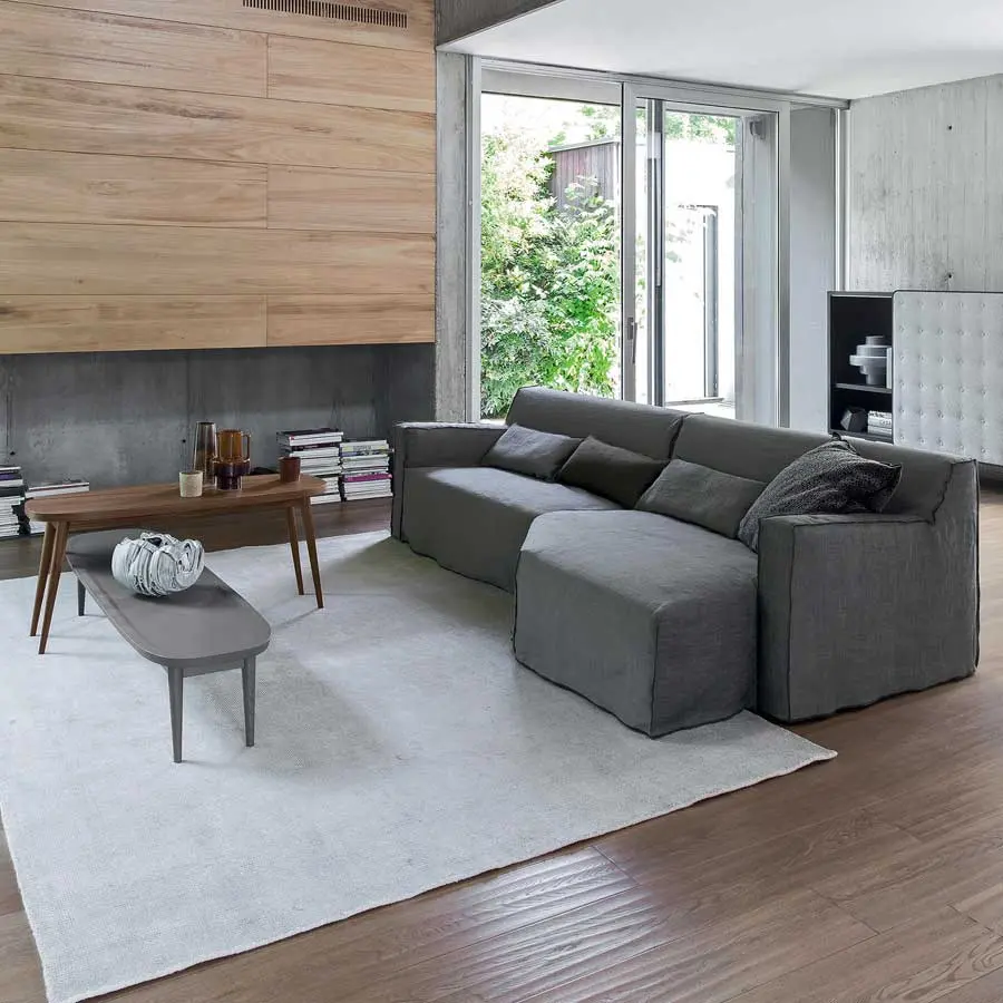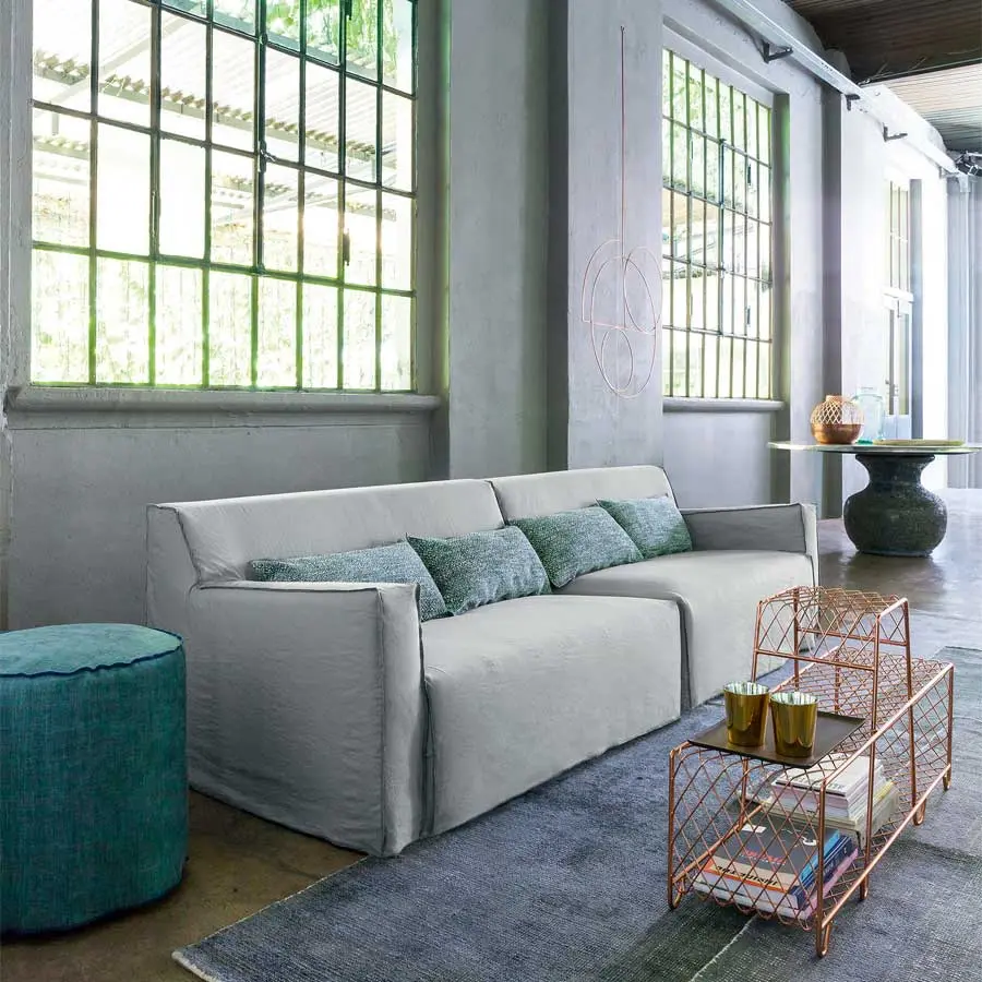 Los volúmenes suaves y generosos caracterizan a estos productos con rellenos de poliuretano expandido y fundas extraíbles con costuras a la vista, que dibujan el perfil del producto. El confort está acentuado gracias a cojines de apoyo de mezcla de plumas. More puede realizarse con todas las fundas del catálogo, bajo el lema de la máxima versatilidad.