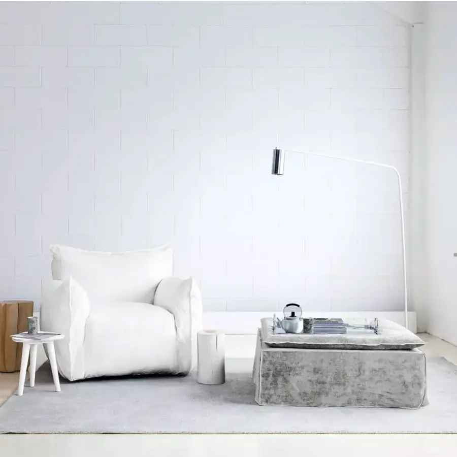 Los volúmenes suaves y generosos caracterizan a este producto con rellenos de poliuretano expandido y fundas extraíbles con costuras a la vista, que dibujan el perfil del producto. More puede realizarse con todas las fundas del catálogo, bajo el lema de la máxima versatilidad.