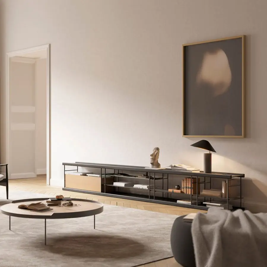 Para crear la Colección Bost para Treku, el estudio Yonoh se basó en su filosofía de diseño: “simplicidad, innovación y originalidad”. El resultado es una colección modular de unidades de almacenamiento de concepto abierto que reflejan un carácter escandinavo, calidez y pureza de formas. Con la altura adecuada, Bost puede servir como mueble de TV, combinando el marco de metal con estantes de madera. Puedes complementar el diseño con cajas de almacenamiento en madera o lacadas.