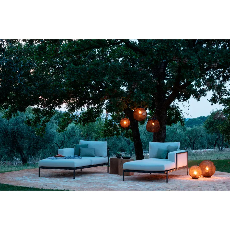 Las maravillosamente acogedoras Natal Alu meridiennes ofrecen una estructura sutil con atractivos reposabrazos curvados que contrastan maravillosamente con los grandes cojines para permitir un lujoso descanso.Atemporal y elegante, la Natal Alu meridienne es un sofá de exterior que encaja en numerosas terrazas.