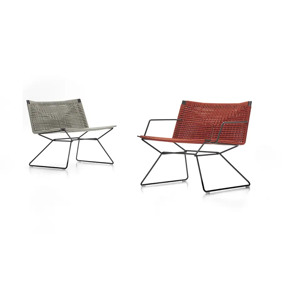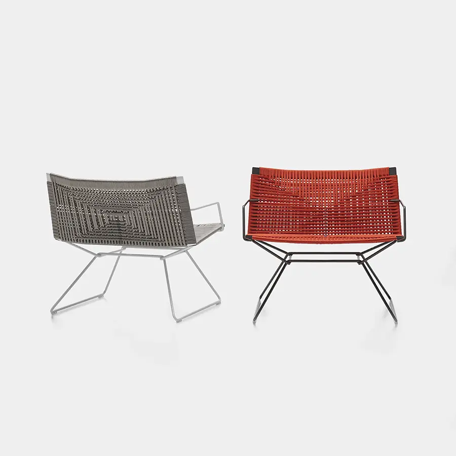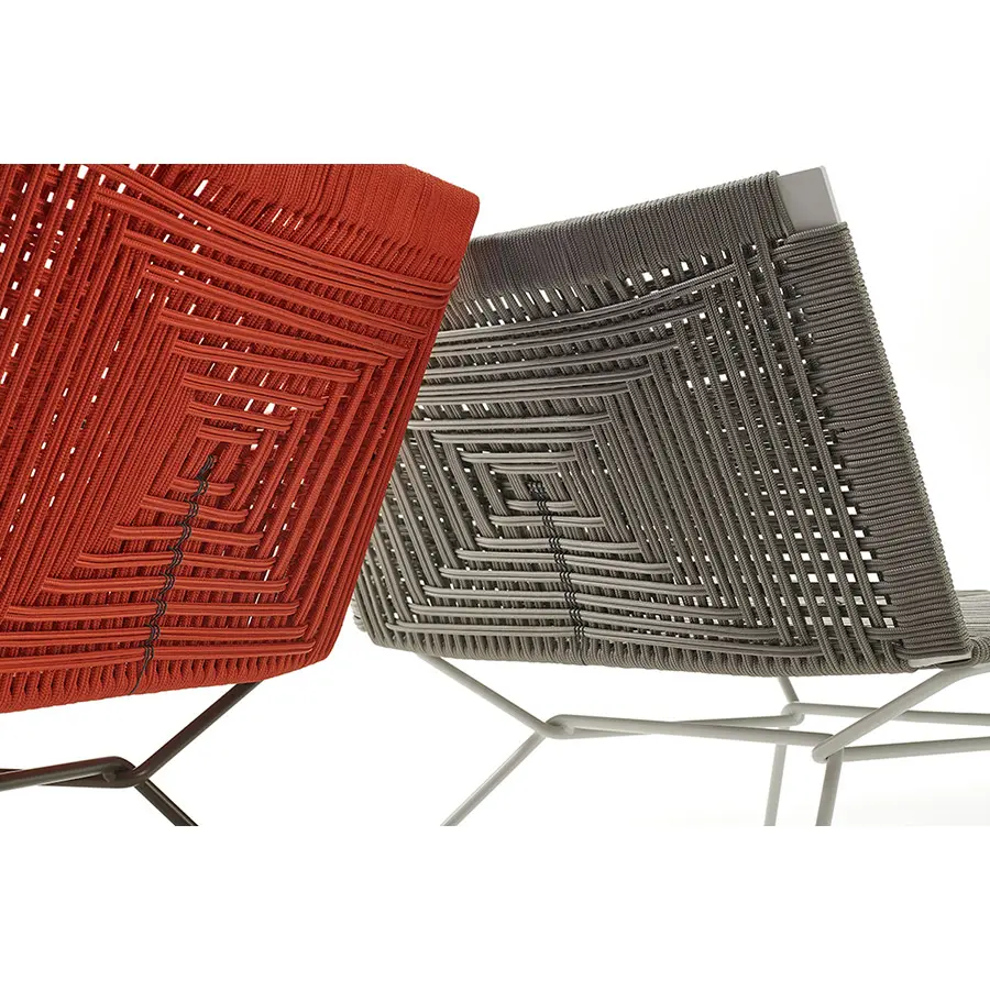 El sillón Neil es versátil, vibrante, pero al mismo tiempo un ícono de esencialidad, en perfecta armonía con el estilo de MDF Italia. Estas son las características principales del sillón Neil, que hoy viene en una nueva versión: Neil twist Armchair, cuyo nombre elocuente nos hace sentir que la cuerda trenzada manualmente es la protagonista del proyecto, con un detalle clave: el punto de cruz interno en contraste. eso agrega carácter a la vista general. Pero las sorpresas no terminan allí para lo que representa el desarrollo del sillón Neil: de hecho, se propone en cuerda con cinco colores diferentes, con base en alambre de acero redondo blanco, bronce o níquel negro; con o sin reposabrazos.