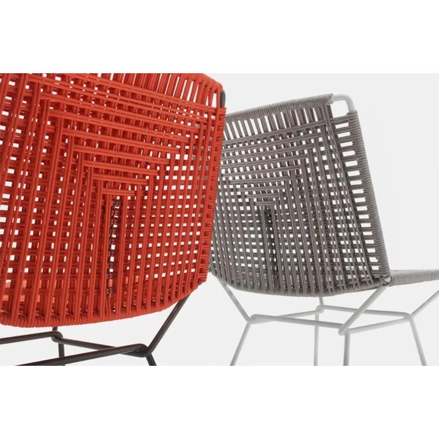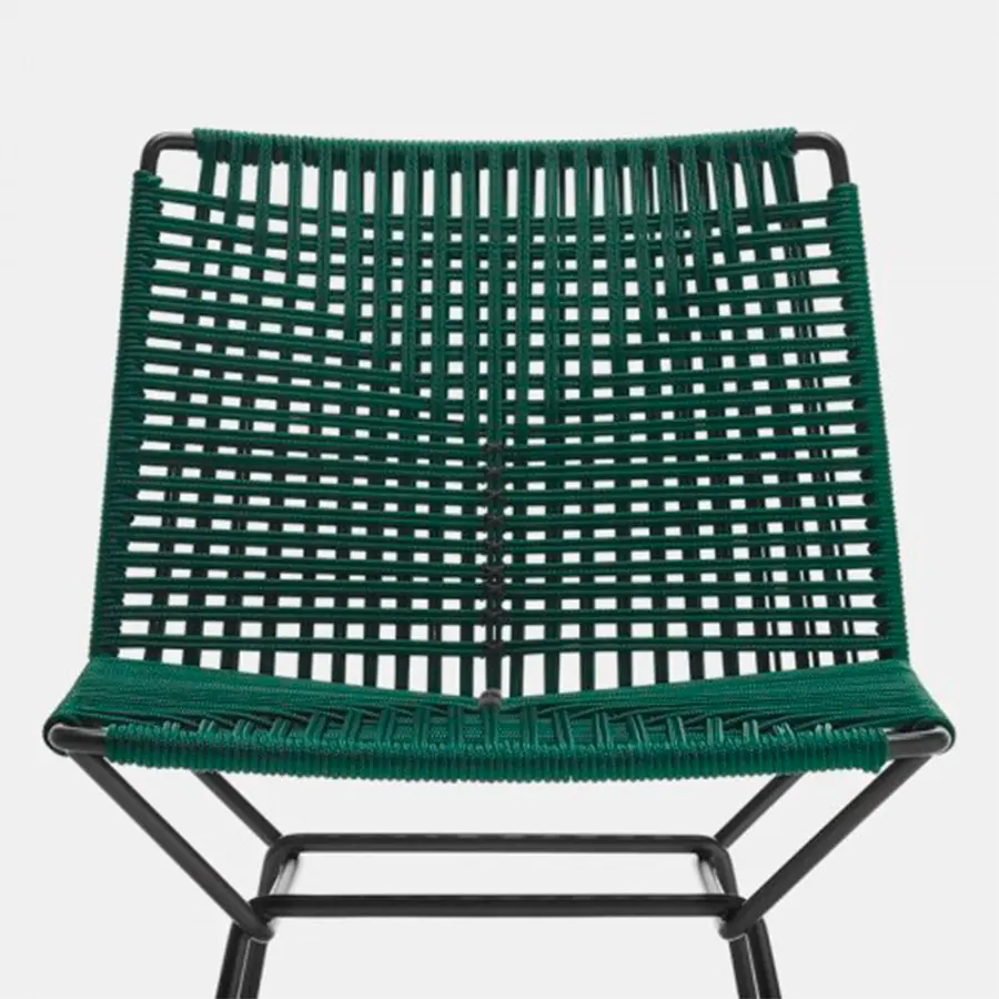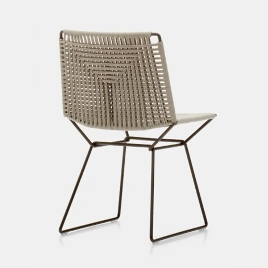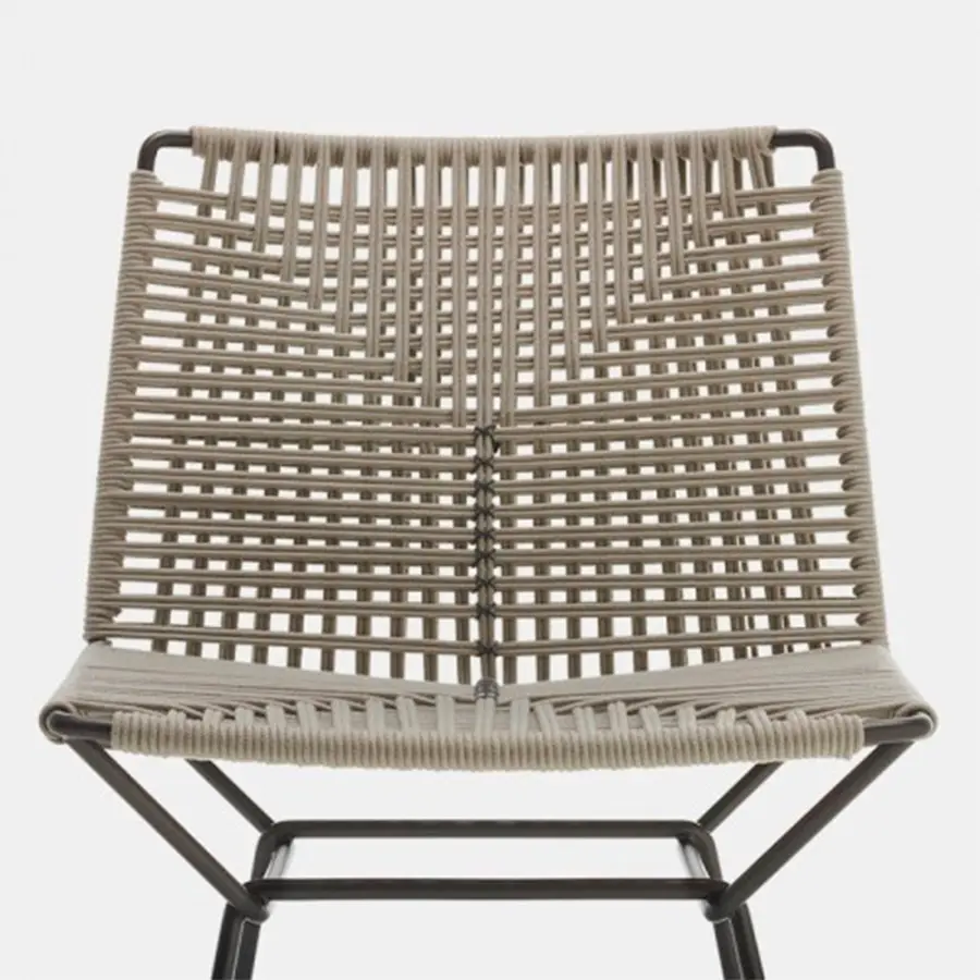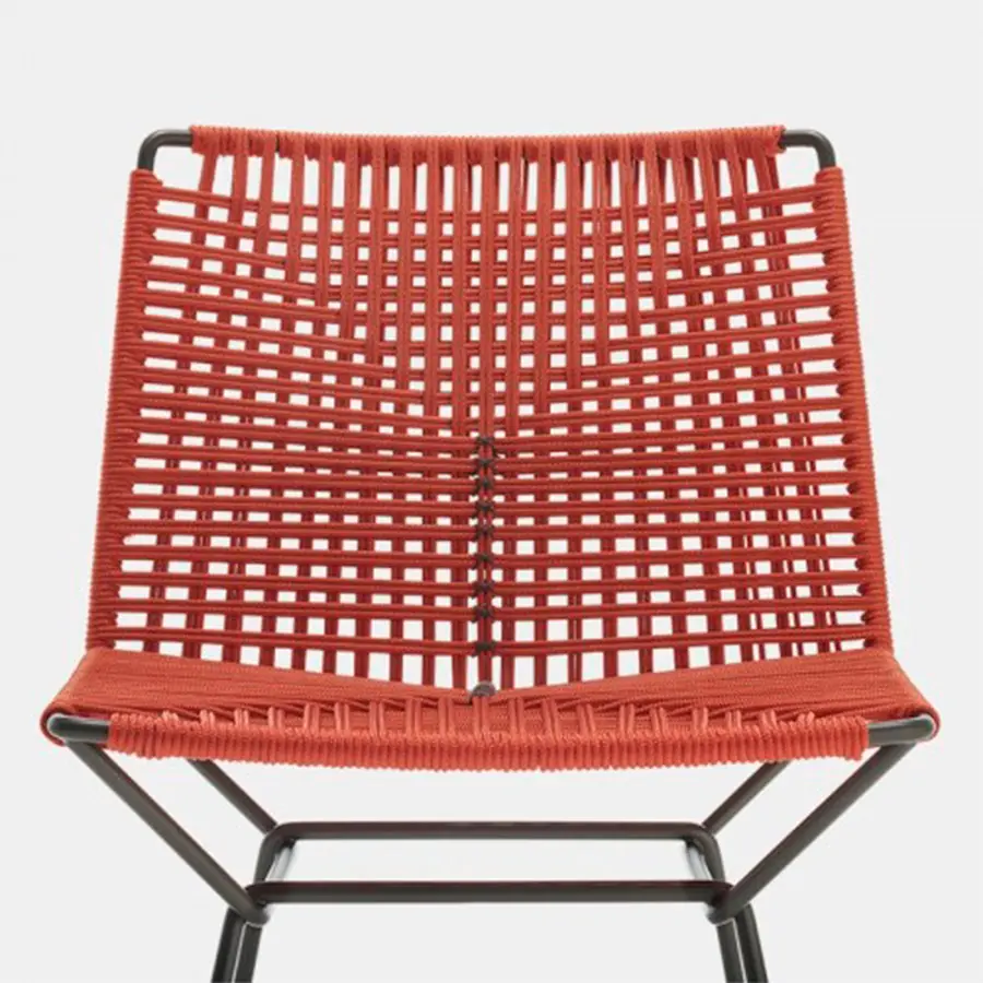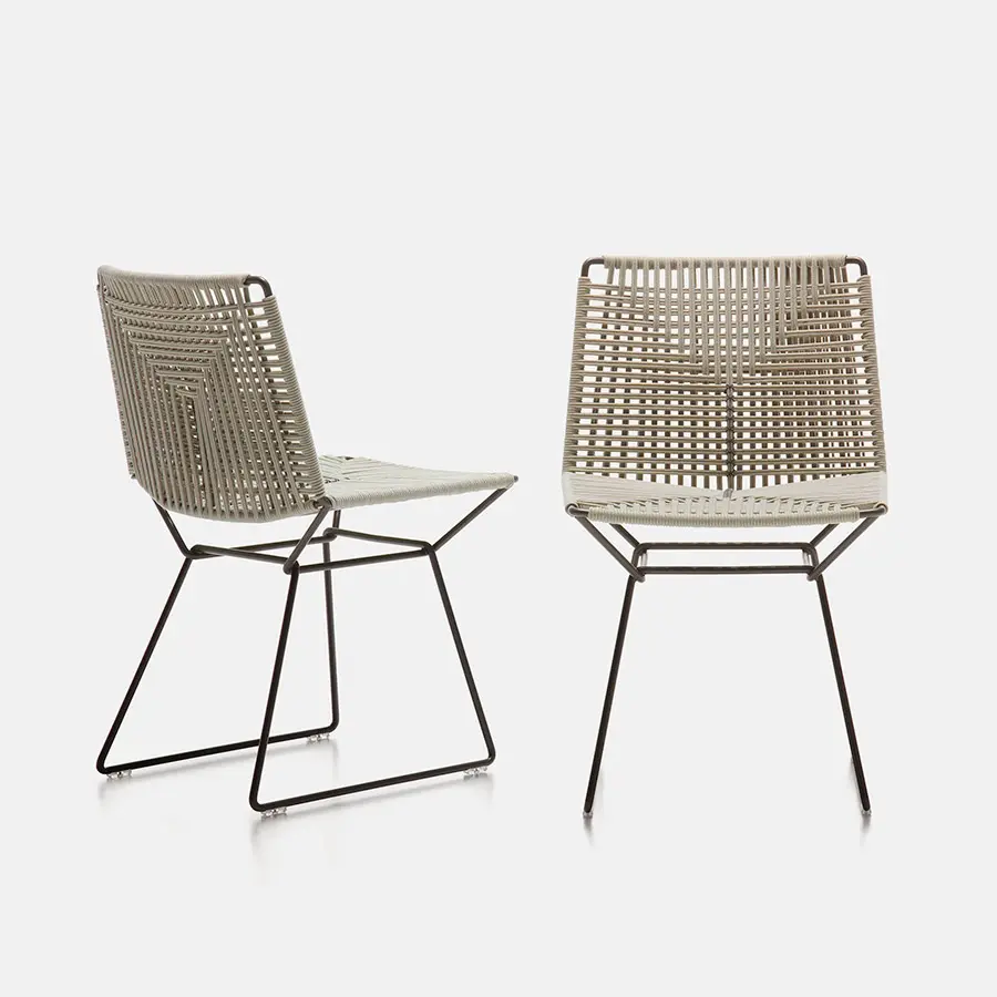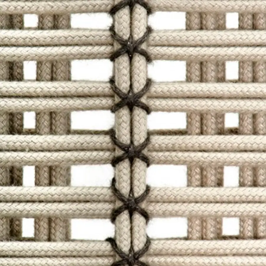 Neil twist Chair, cuyo nombre elocuente nos hace sentir que la cuerda trenzada manualmente es la protagonista del proyecto, con un detalle clave: el punto de cruz interno en contraste que agrega carácter a la vista general.