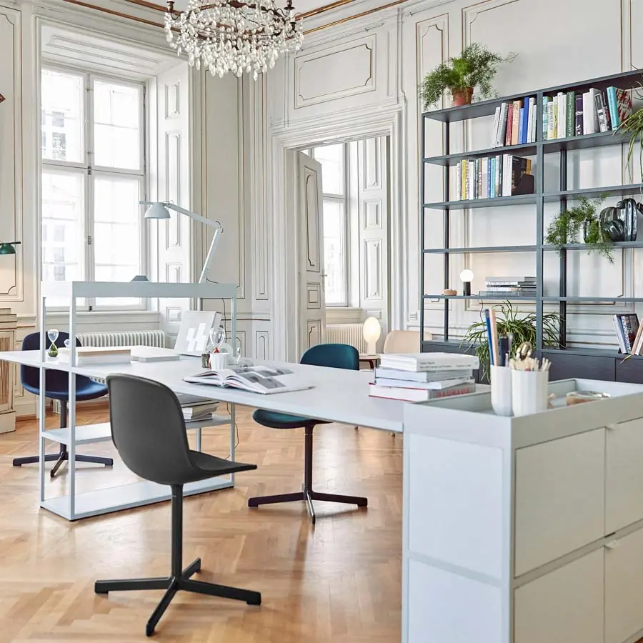 El sistema de mobiliario para oficinas New Order nace de una producción industrial al 100%, reflejando la ambición de crear productos de calidad sin compromisos y de alta precisión. A primera vista, la arquitectura del sistema es ultra simple, pero al conocerla más de cerca demuestra ser bastante compleja en su versatilidad multiusos. New Order puede ser alta o baja, ancha o estrecha, abierta o cerrada, o cualquier combinación intermedia.