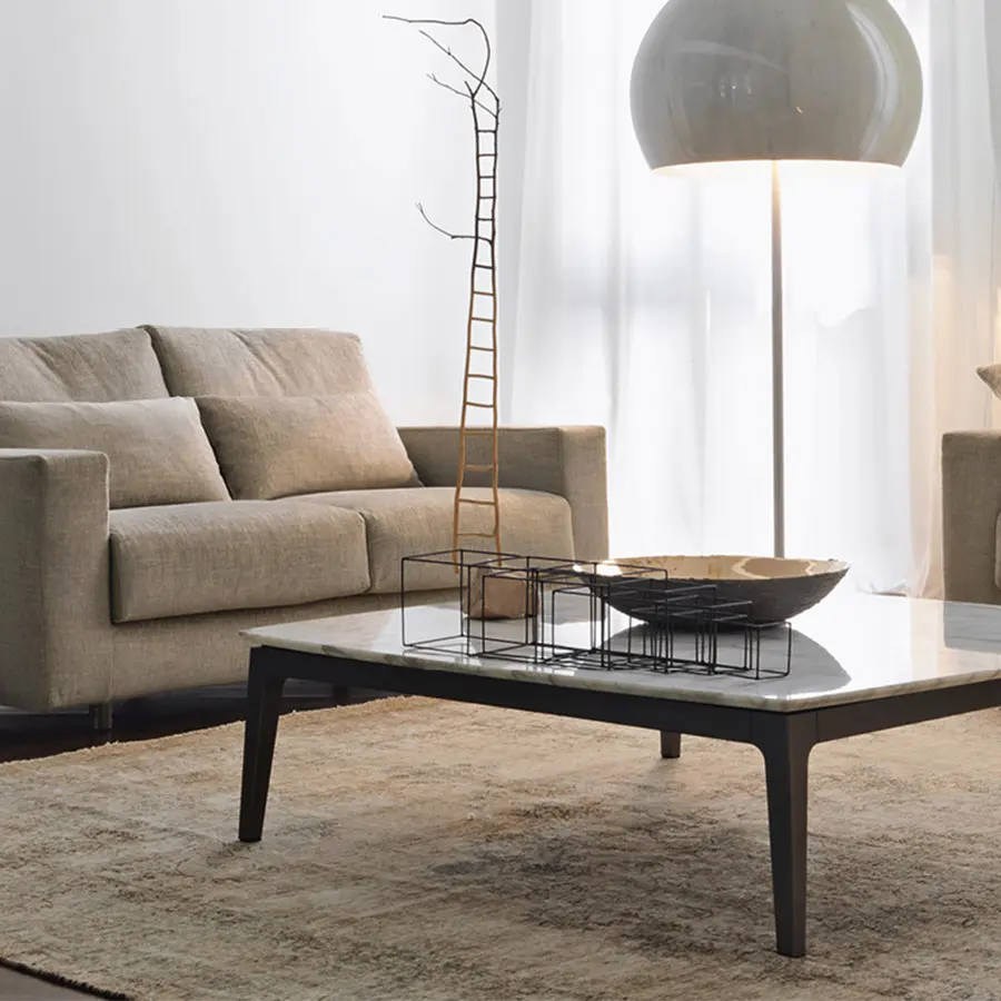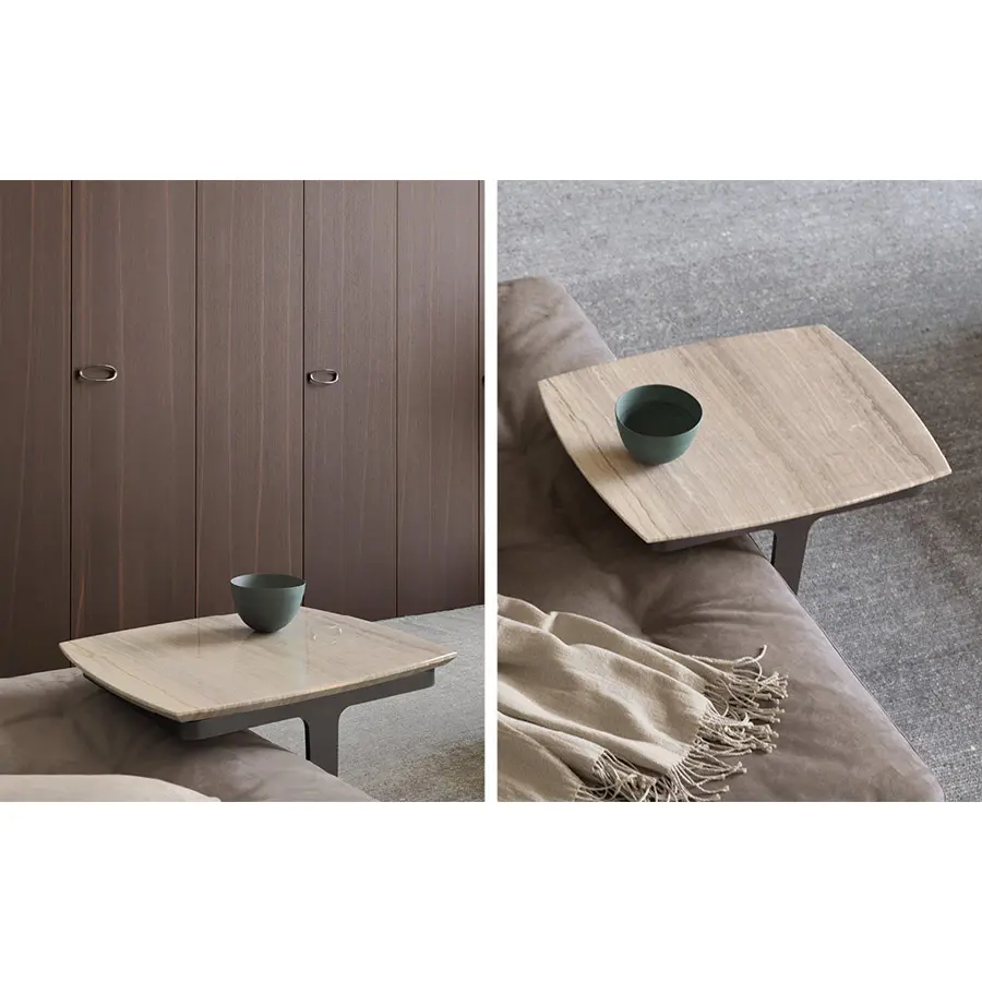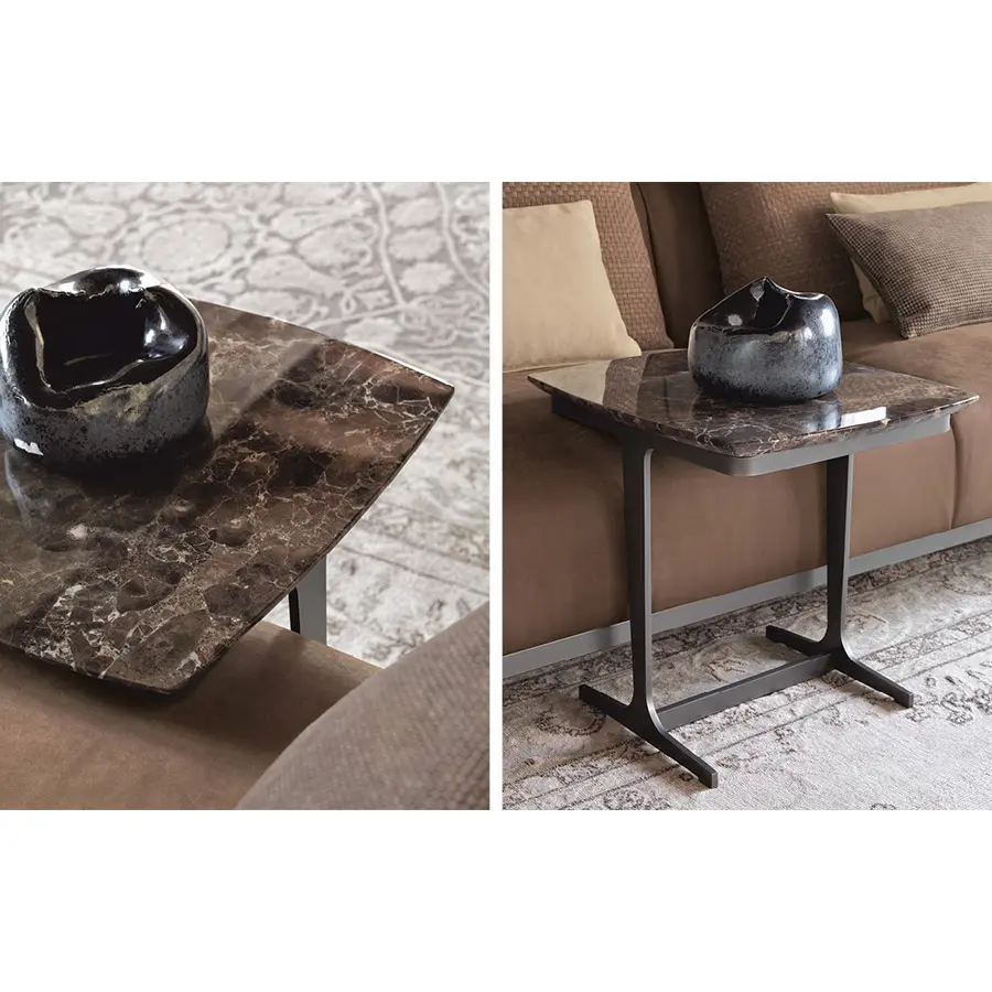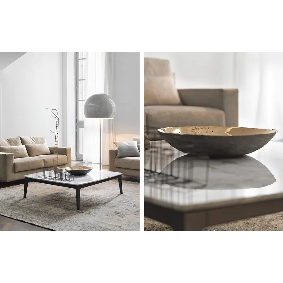 Creadas como complementos ideales de los sofás Olivier, estas mesitas se caracterizan por su encimera en mármol, y combinan muy bien con los otros sofás de la colección Flou. Estructura bruñida mate.