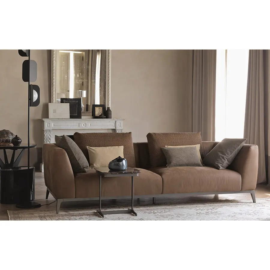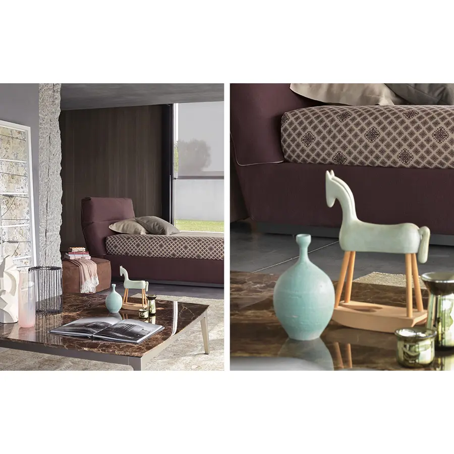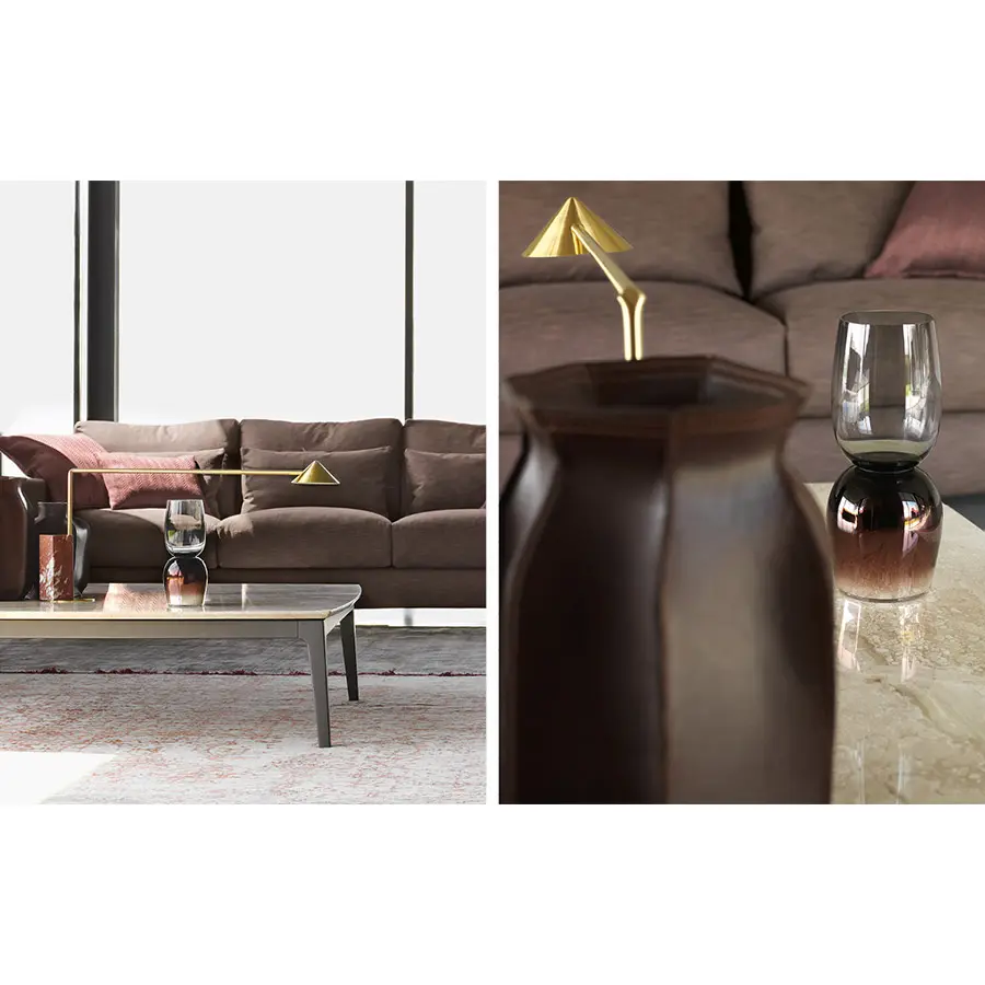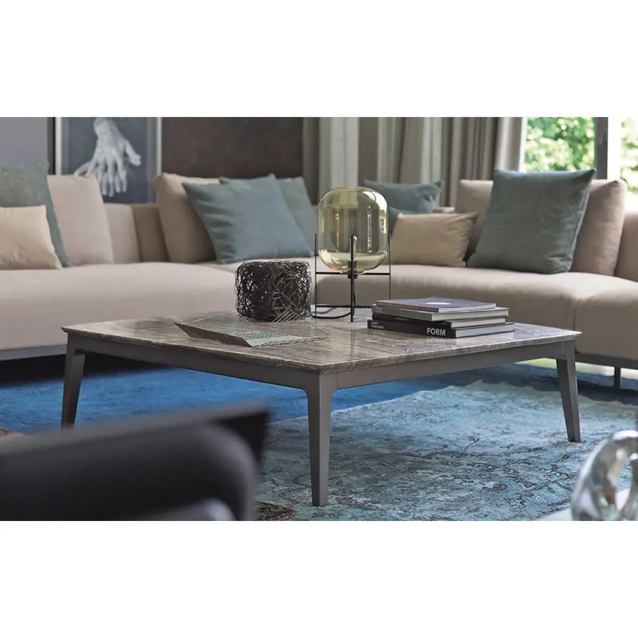 Creadas como complementos ideales de los sofás Olivier, estas mesitas se caracterizan por su encimera en mármol, y combinan muy bien con los otros sofás de la colección Flou. Estructura bruñida mate.
