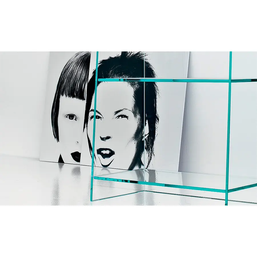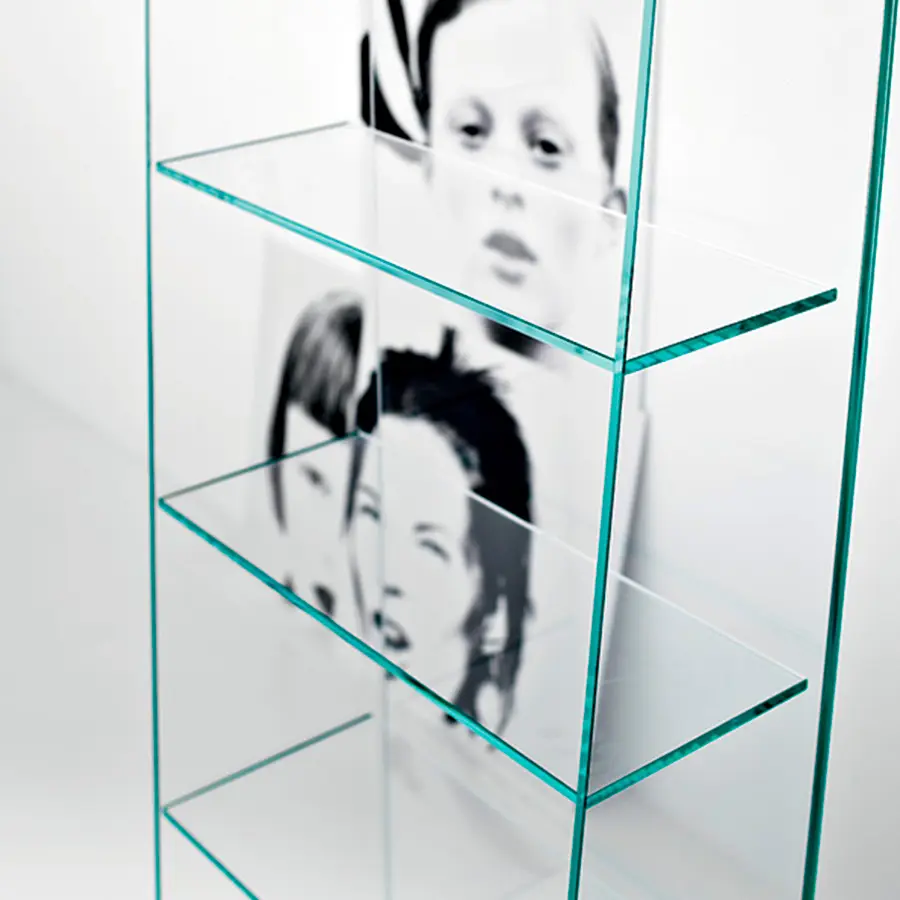 Pantalla / estantería / soporte para CD transparente o extraligero en vidrio pegado.