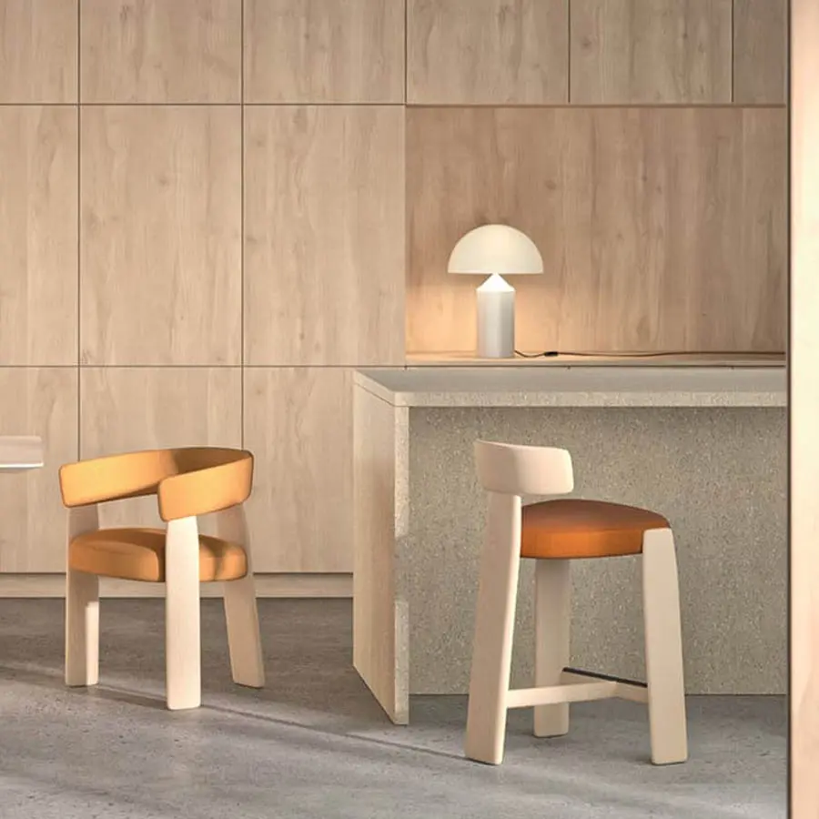 Inspirada con el diseño de los años 70 y con una cierta influencia del sentimiento y estado de ánimo japonés, nace la colección Oru. Un diseño audaz en el que se conjuga la sorprendente arquitectura de 3 pies. La colección Oru ofrece en versión de butaca, silla y taburete, cuyo asiento y respaldo van tapizados con tejido reciclado. Es una pieza ideal para su uso en residencias y espacios hosteleros.
