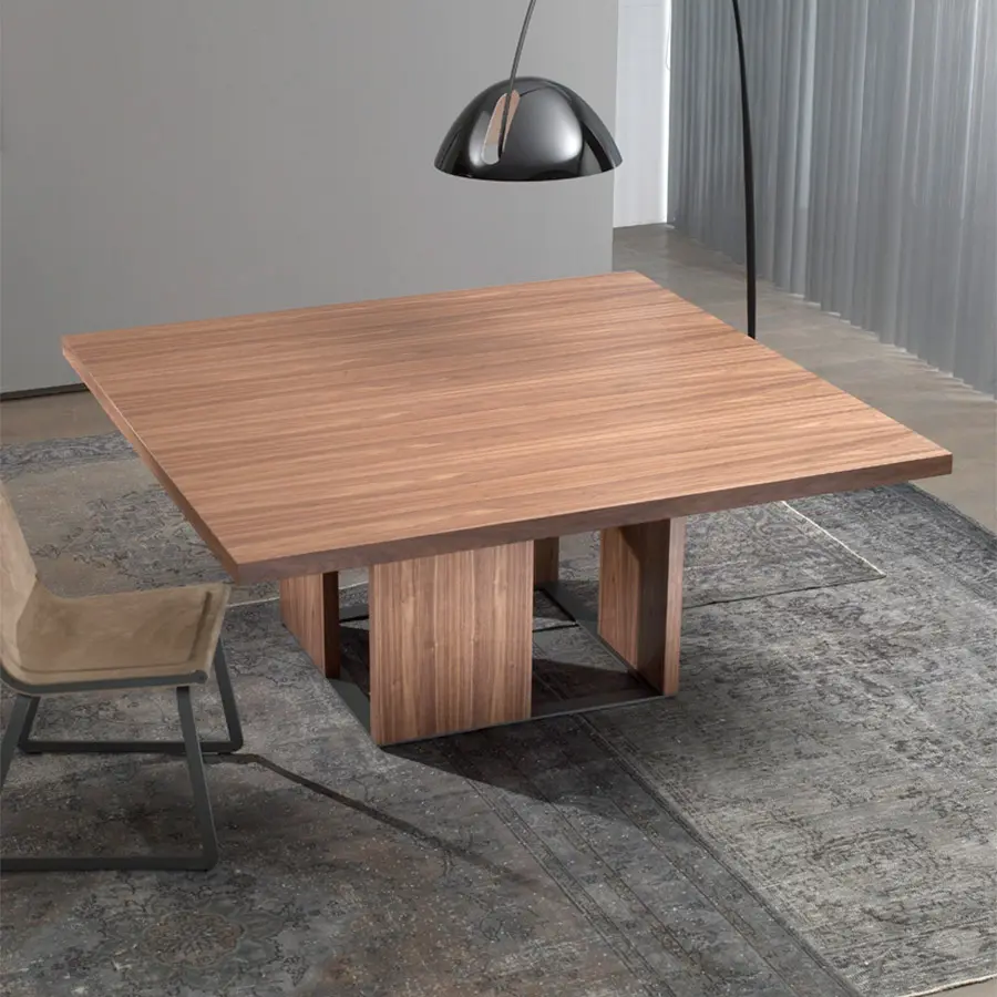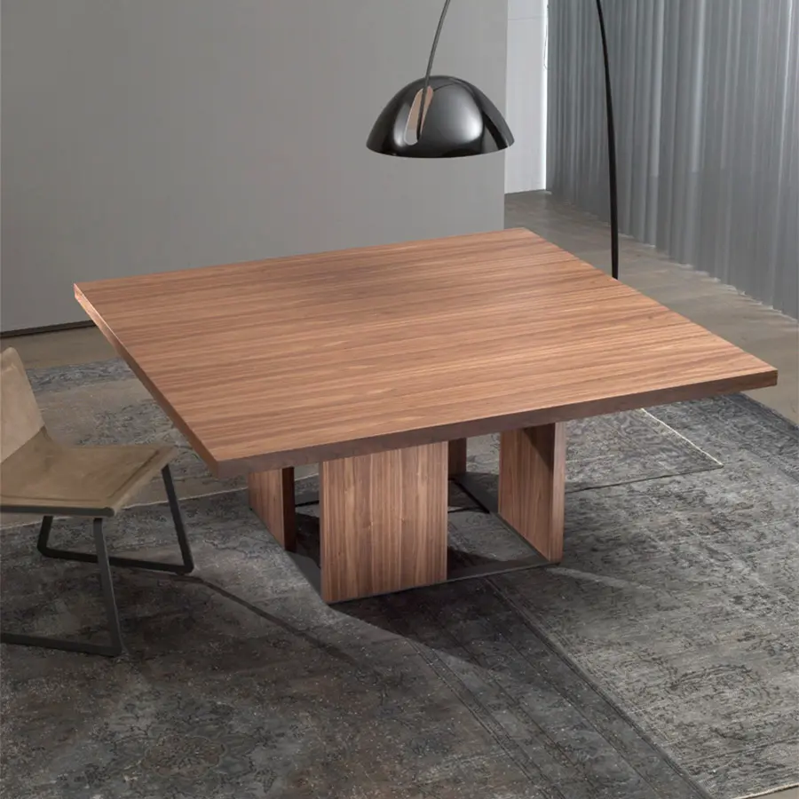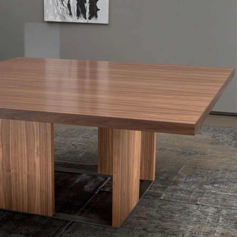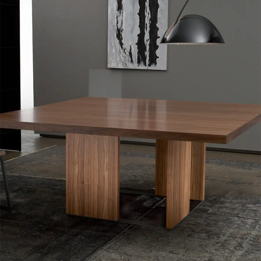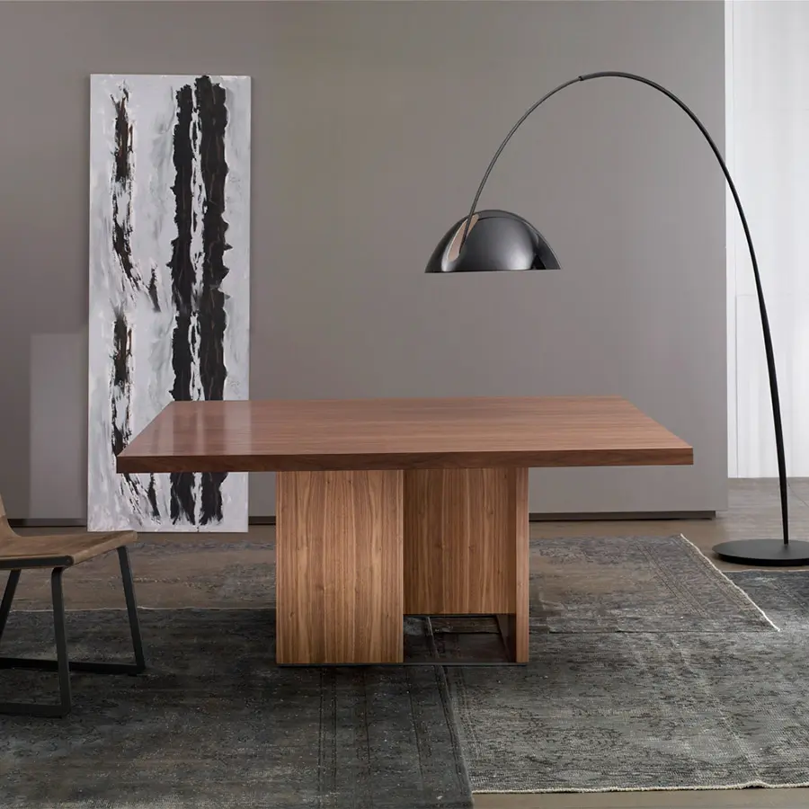Esta nueva versión de Orwell se caracteriza por sustituir los paneles anteriores de metacrilato por paneles de madera a juego con el sobre. Tenemos por tanto una mesa 100% madera que puede ser adaptada a muchos ambientes. En esta versión el zócalo se convierte en protagonista, la alternancia de las piezas colocadas en el mismo provoca un efecto de luces y sombras realmente bello.