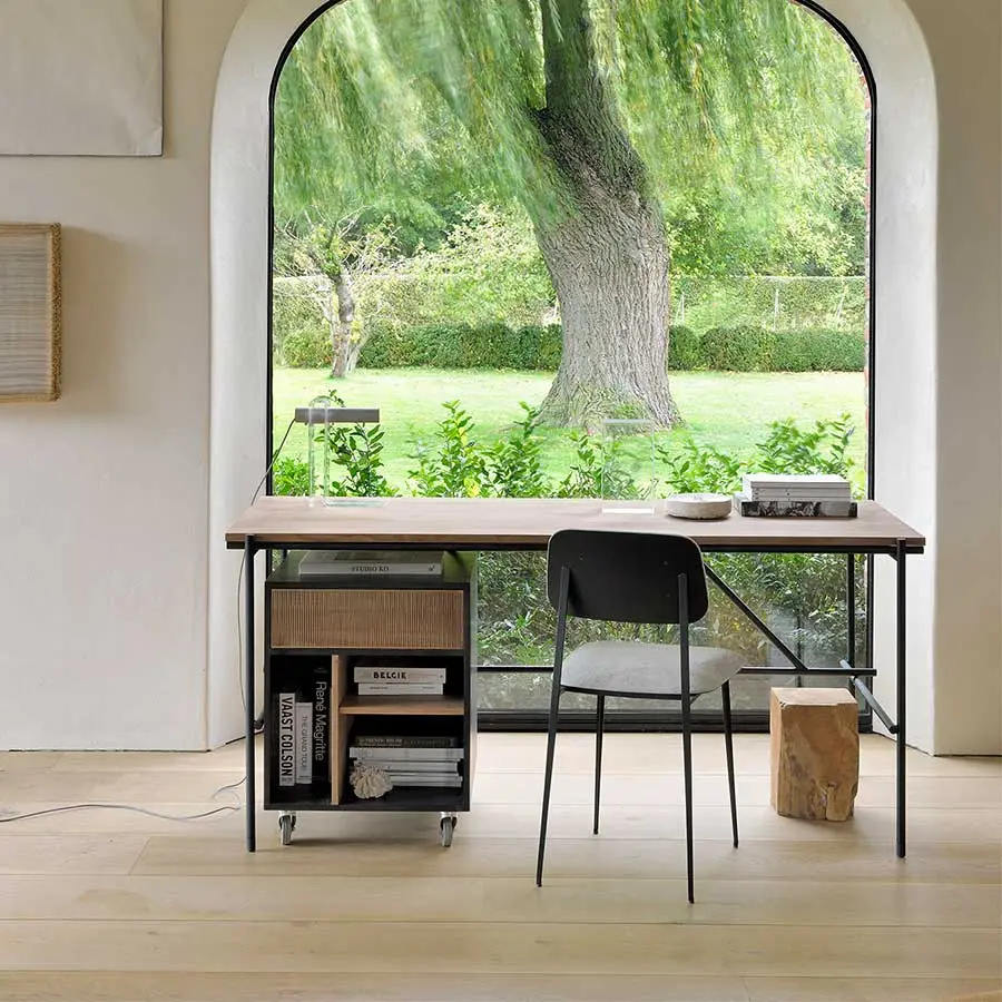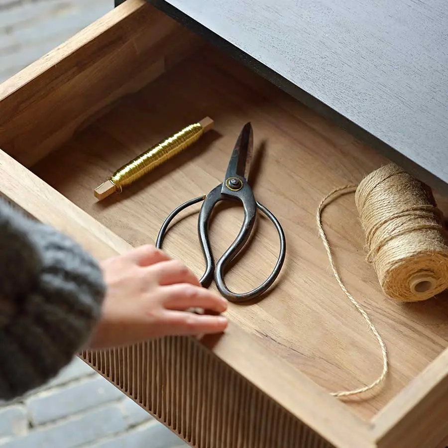 Gracias a la hermosa madera de teca, los detalles tallados a mano y las ruedas, la cajonera Oscar es una pieza versátil y muy funcional. Cabe perfectamente debajo del escritorio de su mismo nombre para conseguir almacenamiento adicional.