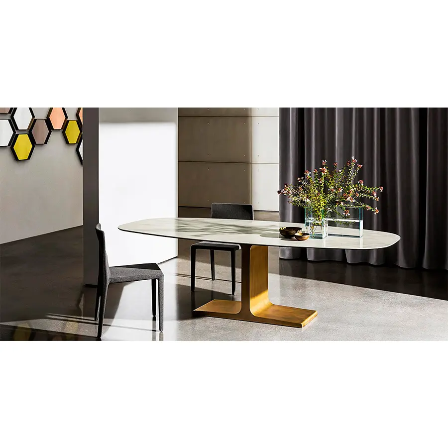 La mesa de comedor Palace y su diseño único se definirán como la protagonista absoluta de la sala de estar, gracias también a sus elegantes formas. Un elemento importante que crea la atmósfera de toda la habitación.