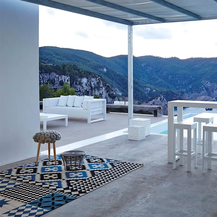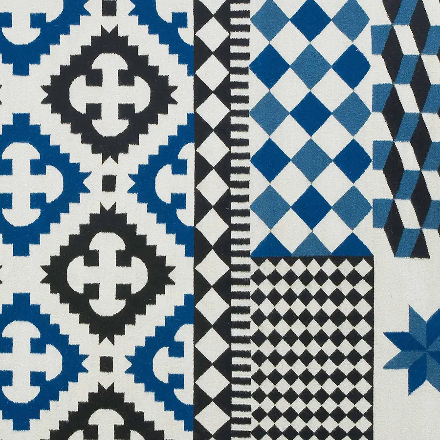 La alfombra Palermo es uno de los modelos diseñados por Sandra Figuerola con una mayor riqueza de patrones de dibujo de nuestra colección de kilims. Se trata de una pieza que combina hasta diez tipos de dibujos distintos, inspirados en azulejos, baldosas y cenefas muy habituales en la decoración antigua de la cuenca mediterránea.